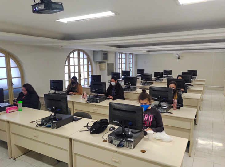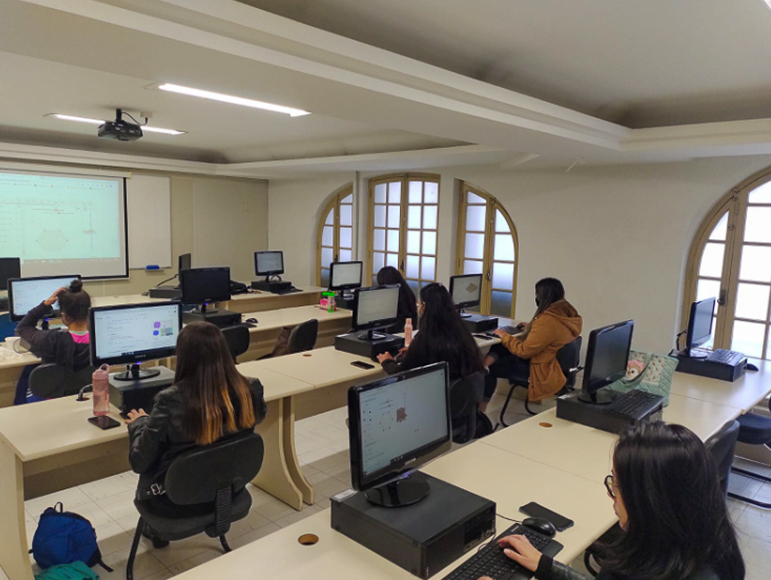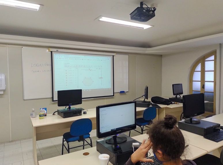 No primeiro encontro, o professor apresentou algumas das atividades que podem ser realizadas pelo programa. Já na segunda aula, as estudantes aprenderam a realizar as atividades no GeoGebra. E, para finalizar, praticaram como criar tarefas e disponibilizá-las no Google Sala de Aula.