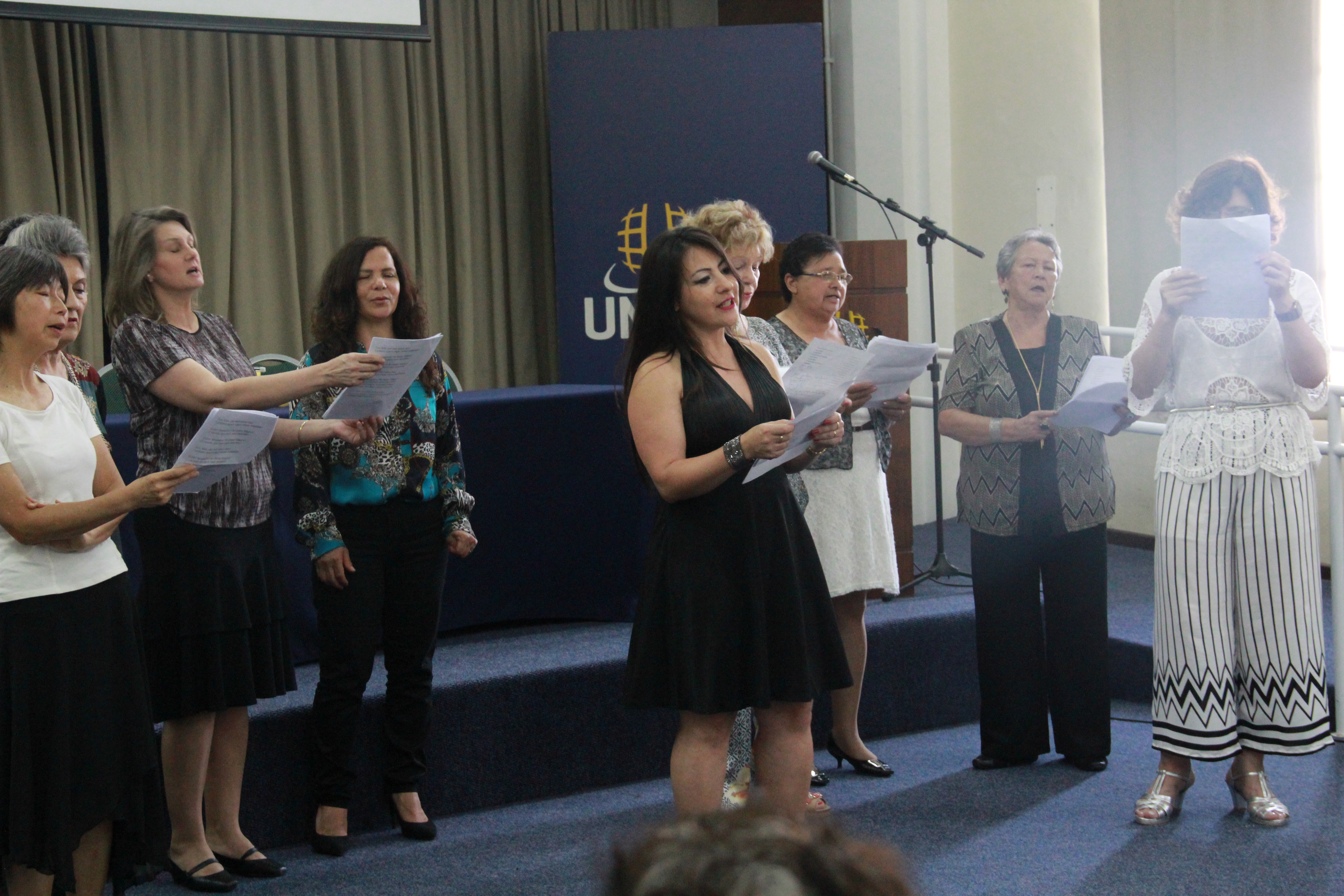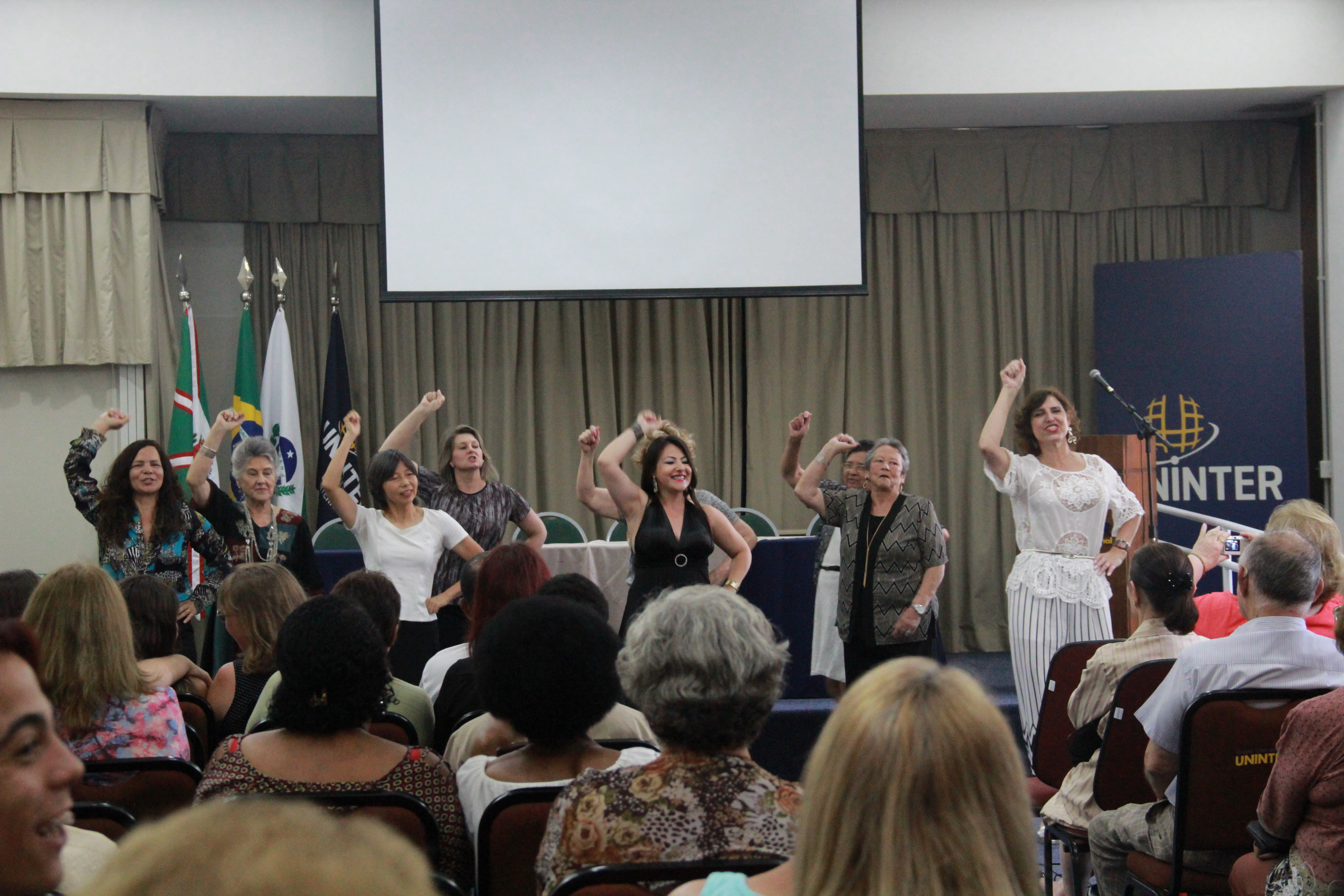 Jovens e adultos de diversas idades estiveram reunidos no último dia 7 no campus Garcez da Uninter para a confraternização de fim de ano. O evento marcou o encerramento dos cursos realizados em 2016 pelo instituto IBGPEX, braço de responsabilidade socioambiental do Grupo Uninter. Teatro, exposição de pinturas, dança, música, desfile de aventais e poesia foram algumas das atividades realizadas na ocasião.