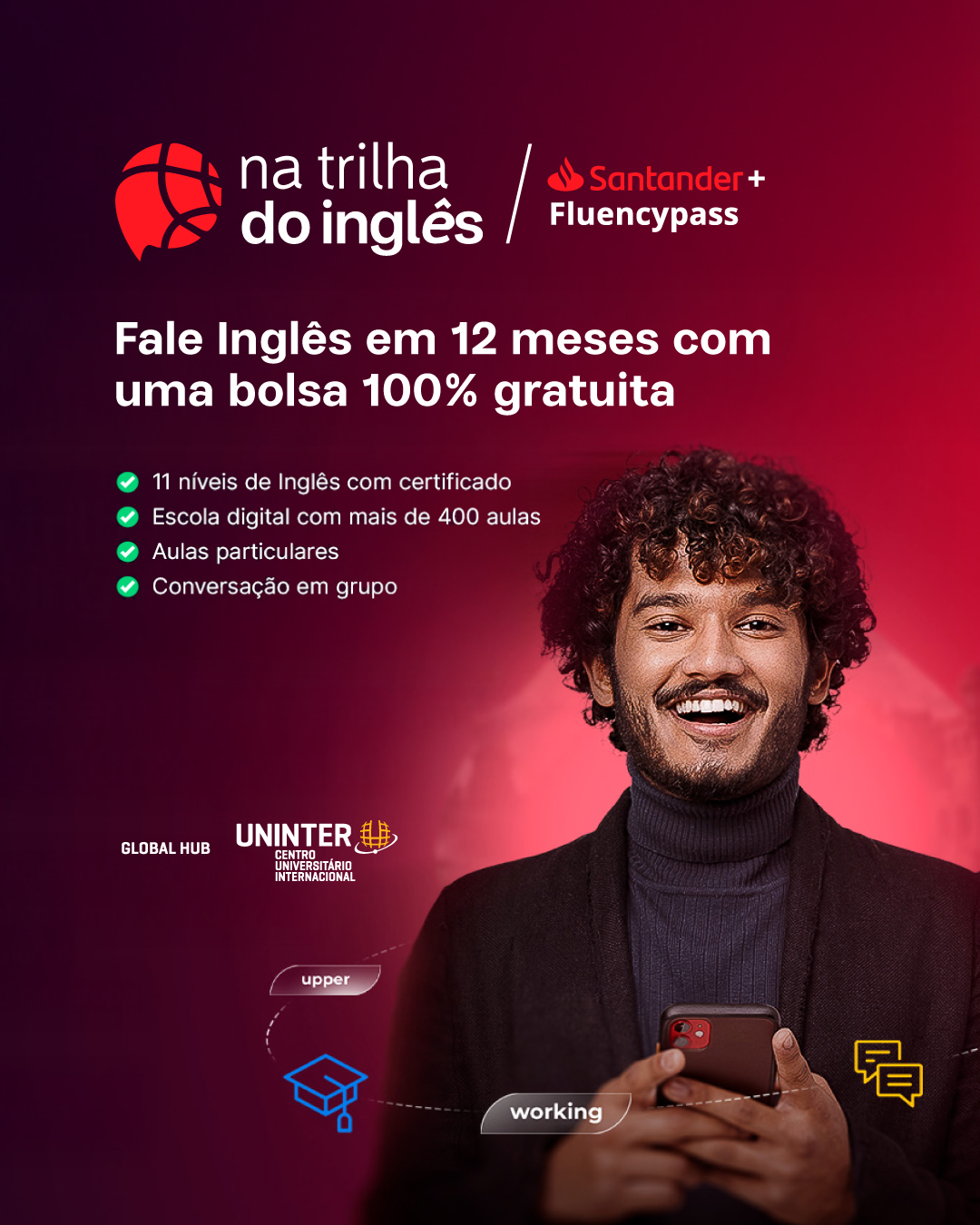 Outra iniciativa é o Santander Na Trilha do Inglês, oferecido pela escola FluencyPass. O programa é gratuito e visa ajudar no aprendizado do inglês e é pensado para todos os níveis de fluência, desde o iniciante até aquele que já tenha alguma base. O programa oferece até 20 bolsas de estudo por edição.