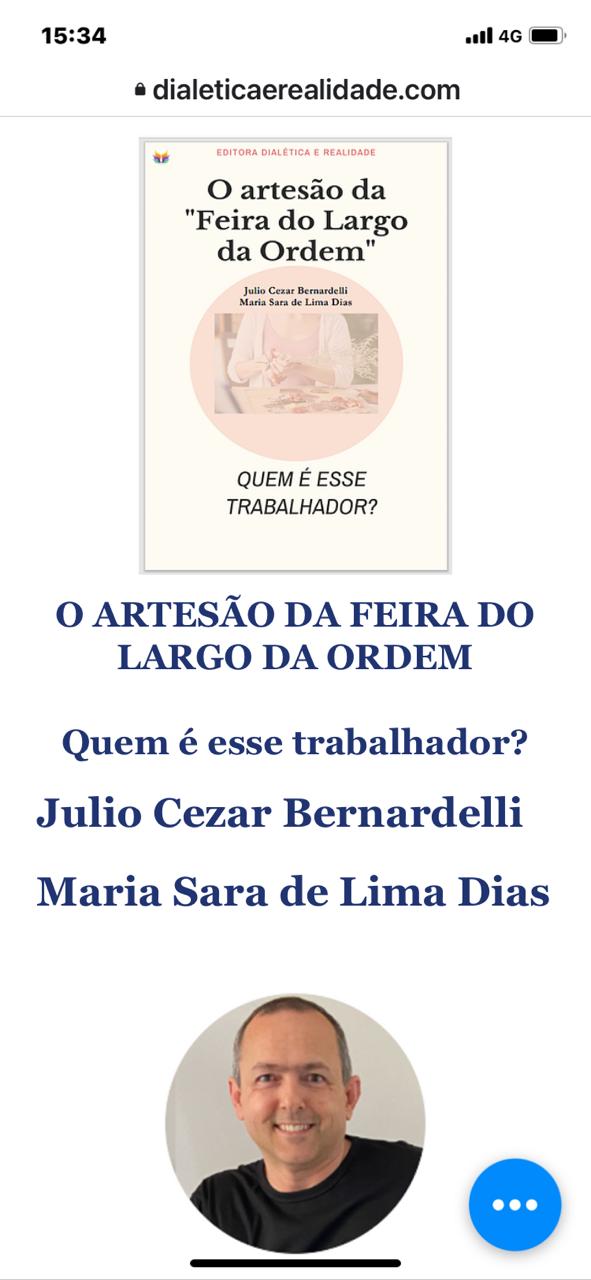 O resultado do trabalho de mestrado do coordenador foi a publicação de um livro virtual e gratuito, intitulado O artesão da Feira do Largo da Ordem: quem é esse trabalhador?, escrito em parceria com a pesquisadora Maria Sara de Lima Dias. A obra conta com 17 personagens. Vale ressaltar que foram 26 feirantes acompanhados pelo professor, mas o número foi reduzido no livro, pois os participantes foram separados em grupos. “A seleção aconteceu conforme o tipo de trabalho realizado”, complementa Bernardelli.