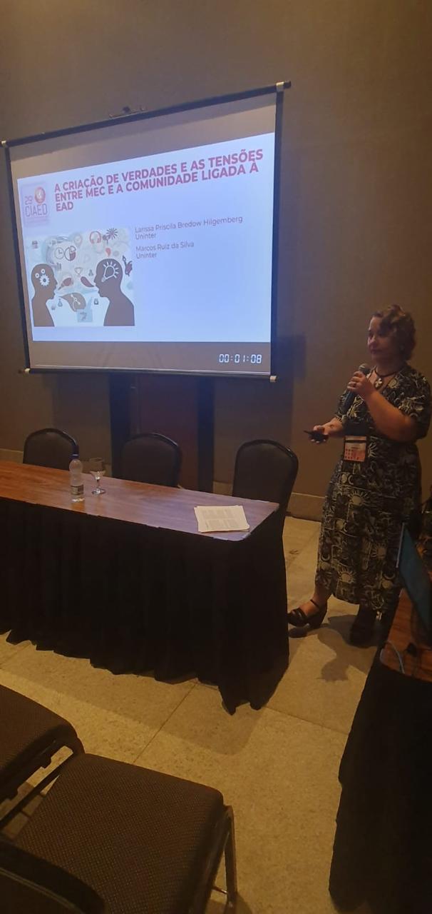 Para a professora Angela Tripoli, que apresentou trabalho no evento “participar do congresso foi uma experiência muito gratificante e de grande aprendizado, enriquecida pelas discussões valiosas nas plenárias, como a que abordou o marco regulatório da Educação a Distância”, relata.