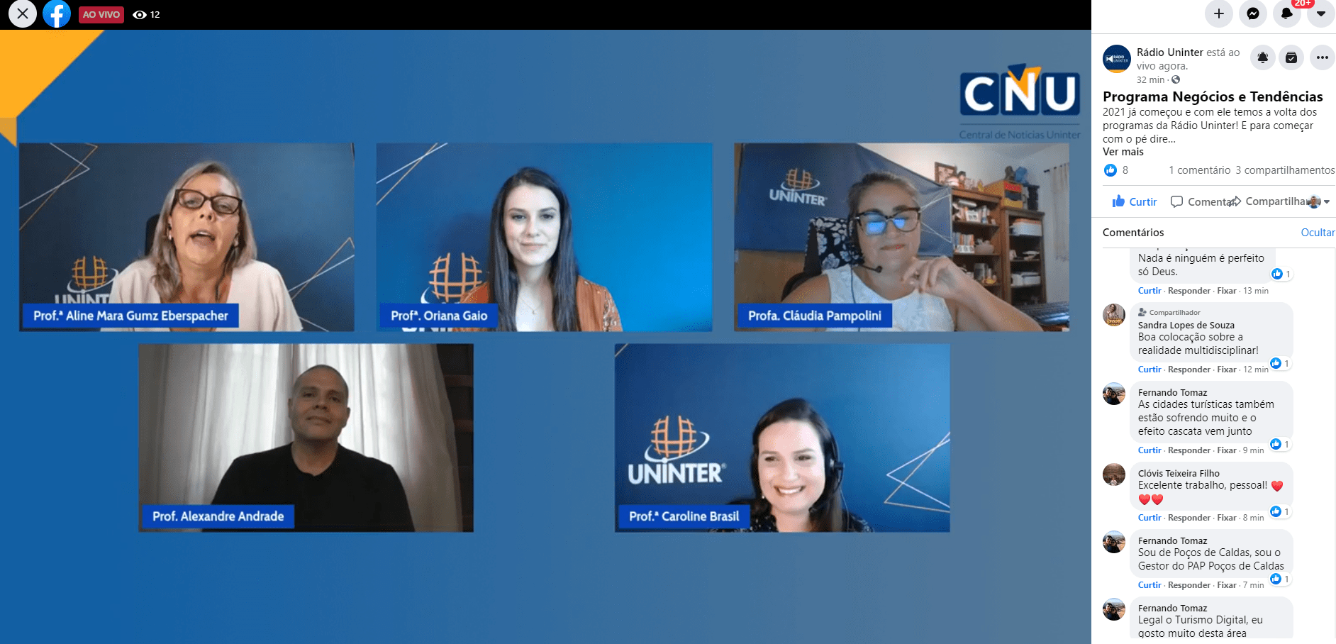 Durante a transmissão ao vivo houve participação de ouvintes, entre eles Fernando Tomaz, que é gestor de polo da Uninter de Caldas Novas (MG). Ele comenta: “Foi um ano de nos reinventarmos, alcançar os objetivos de formas diferentes. A EAD de qualidade e como o método correto de ensino, aplicado nas diferentes áreas, foi muito importante”, afirma.
