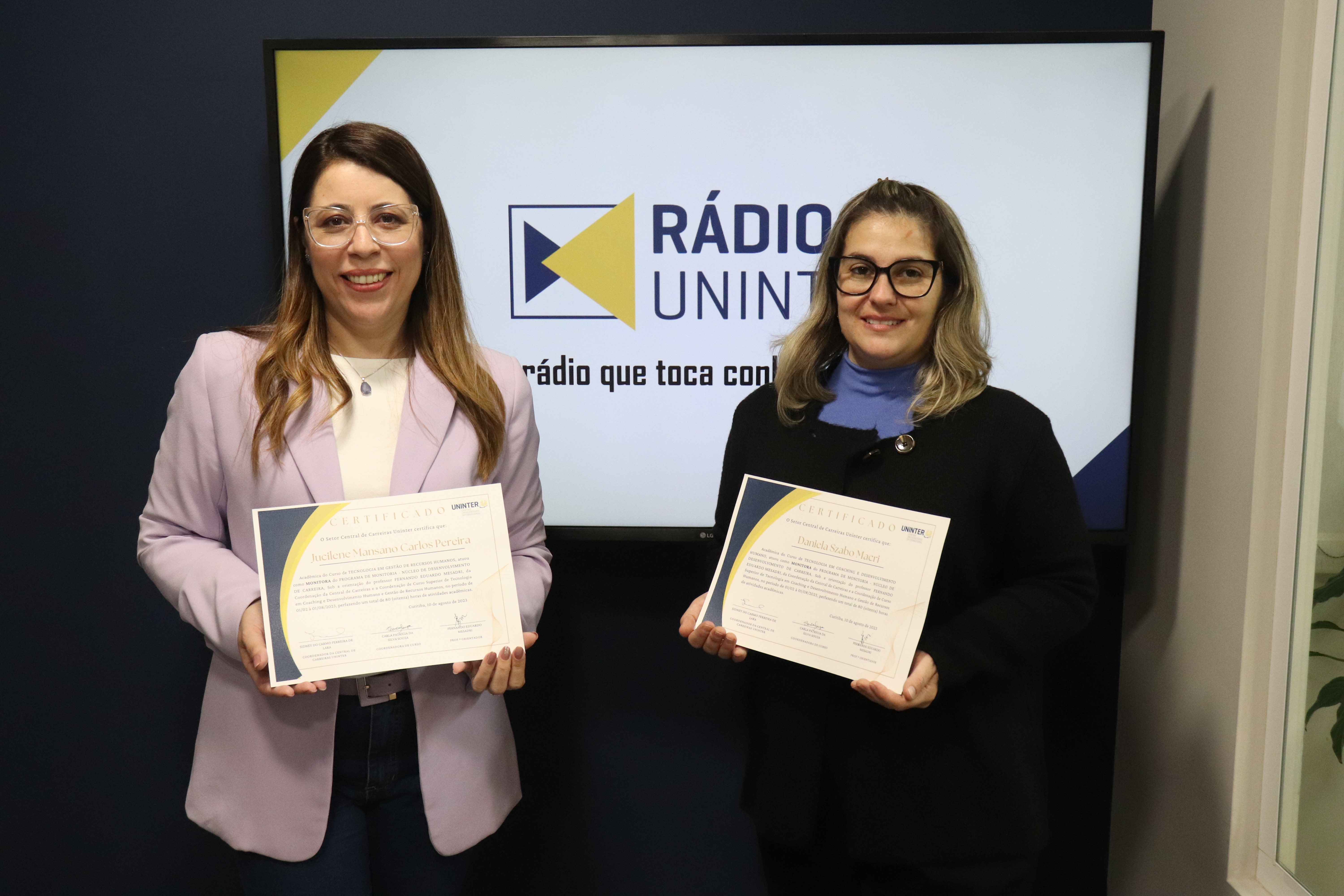 Das cidades paulistas de Atibaia e Mogi das Cruzes, Jucilene e Daniela trabalharam no monitoramento de alunos de fevereiro a julho de 2023 e estiveram presentes em Curitiba para conhecer as instalações da Uninter e receber o certificado que alega a competência do uso da ferramenta BMY. Os certificados foram entregues durante a participação no programa Conversa com o Reitor, da Rádio Uninter, transmitido em 11 de agosto de 2023. “Tem que colocar o certificado no currículo Lattes também, pois vai que picou a mosquinha característica de professor, ou de orientador?Precisamos sempre de bons profissionais”, enfatiza o reitor Benhur Gaio.