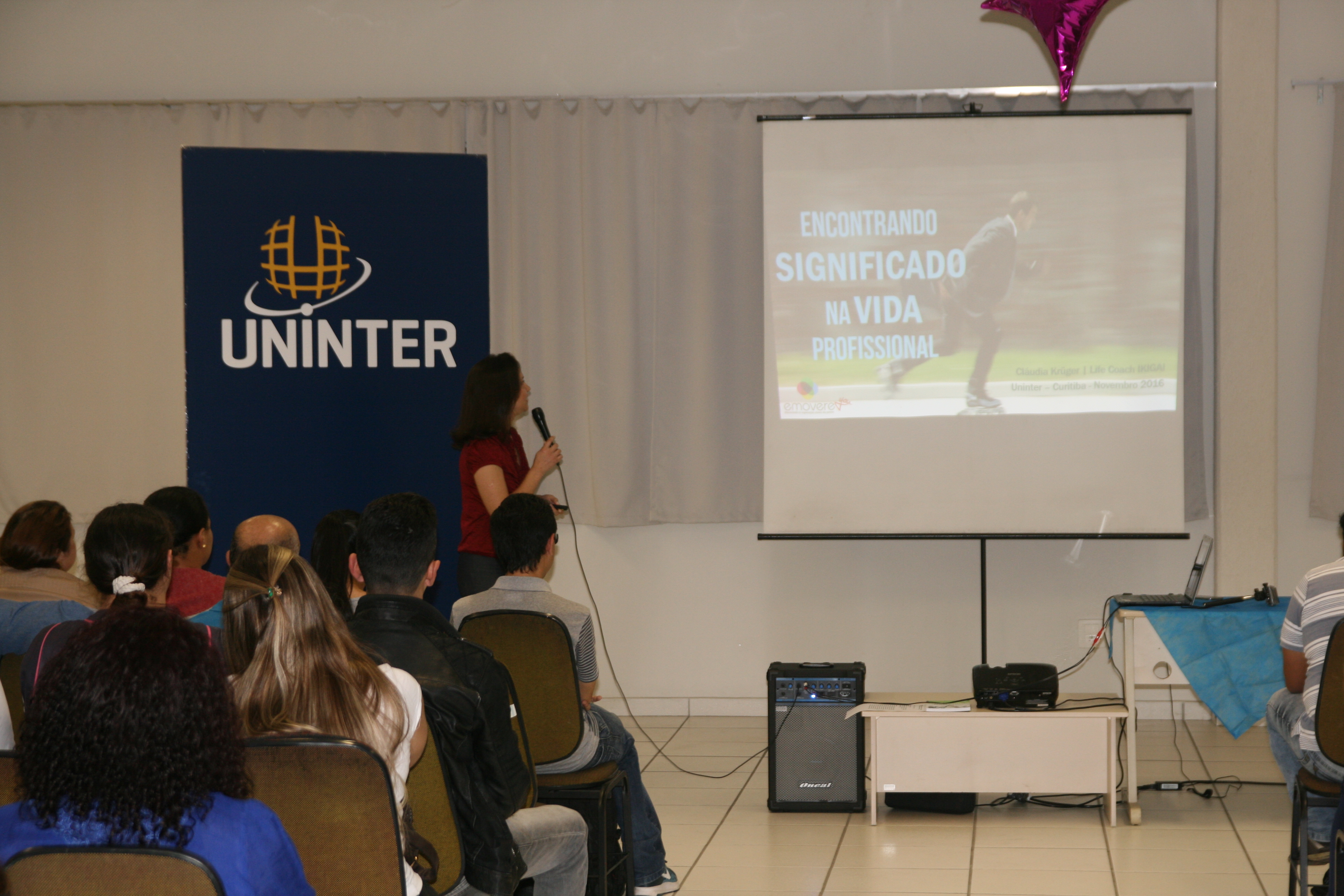 A busca pelo sucesso profissional está muito presente na vida das pessoas. Mas o que é ter sucesso na profissão, diante da subjetividade do termo? Primeiro, é preciso saber o que se entende por sucesso. Para discutir possíveis respostas, o polo da Uninter no bairro Cidade Industrial de Curitiba (CIC) realizou dia 7 de novembro a palestra “Encontrando significado na vida profissional”, apresentada pela empresária Claudia Krüger, sócia da empresa EmovereYou.
