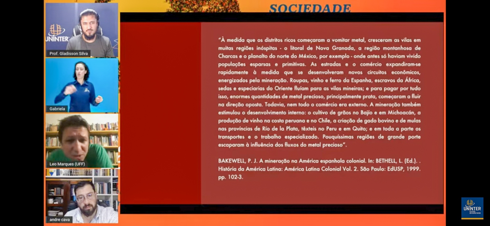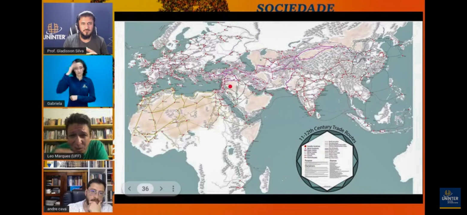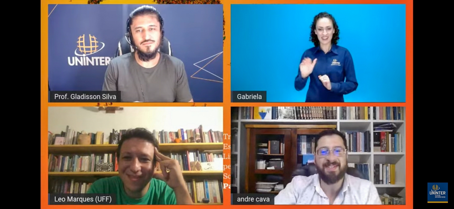 Leonardo Marques foi o palestrante convidado no 1° dia do 3º Encontro Linguagens e Sociedade da Uninter, no dia 23 de novembro de 2021. Com o tema “A vida em movimento: migrações e diásporas”, o evento também contou com a presença da diretora da Escola Superior de Educação, Dinamara Machado, da doutora em estudos literários Deisily de Quadros, do especialista em metodologia do ensino de história Gladisson Silva, e do doutor em história social André Cavazani.