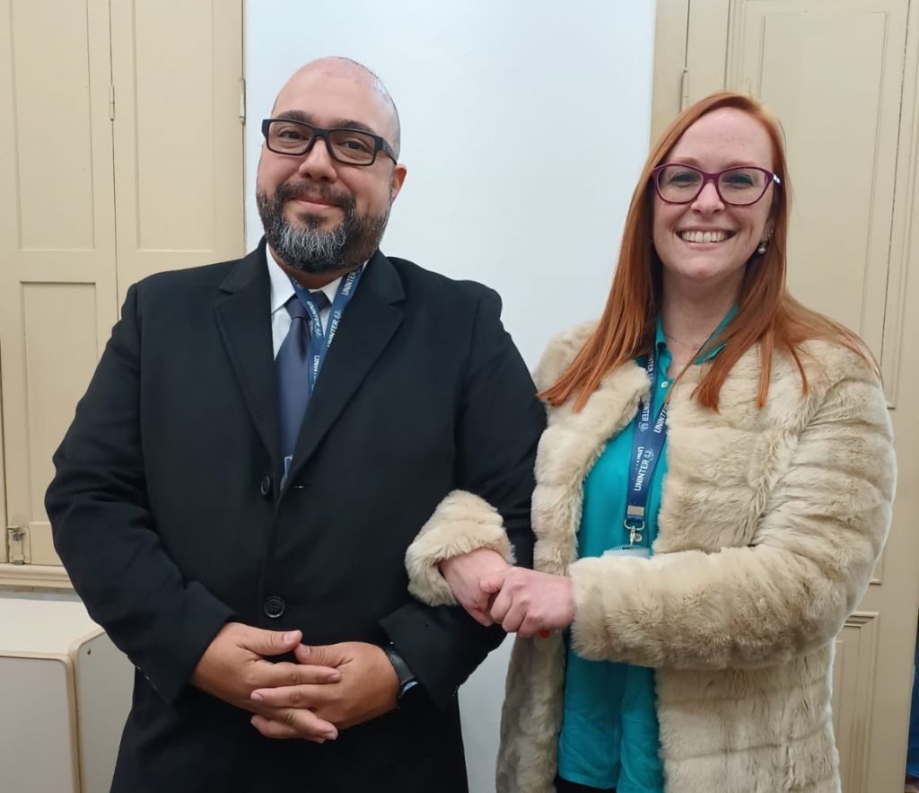 Ao lado dele, está Larissa Barbosa de Paula. Aos 36 anos, Larissa é mestre em Biologia Funcional e Molecular com ênfase em Bioquímica pela Universidade Estadual de Campinas (UNICAMP) e ocupa o cargo de tutora do curso de Biomedicina da Uninter.