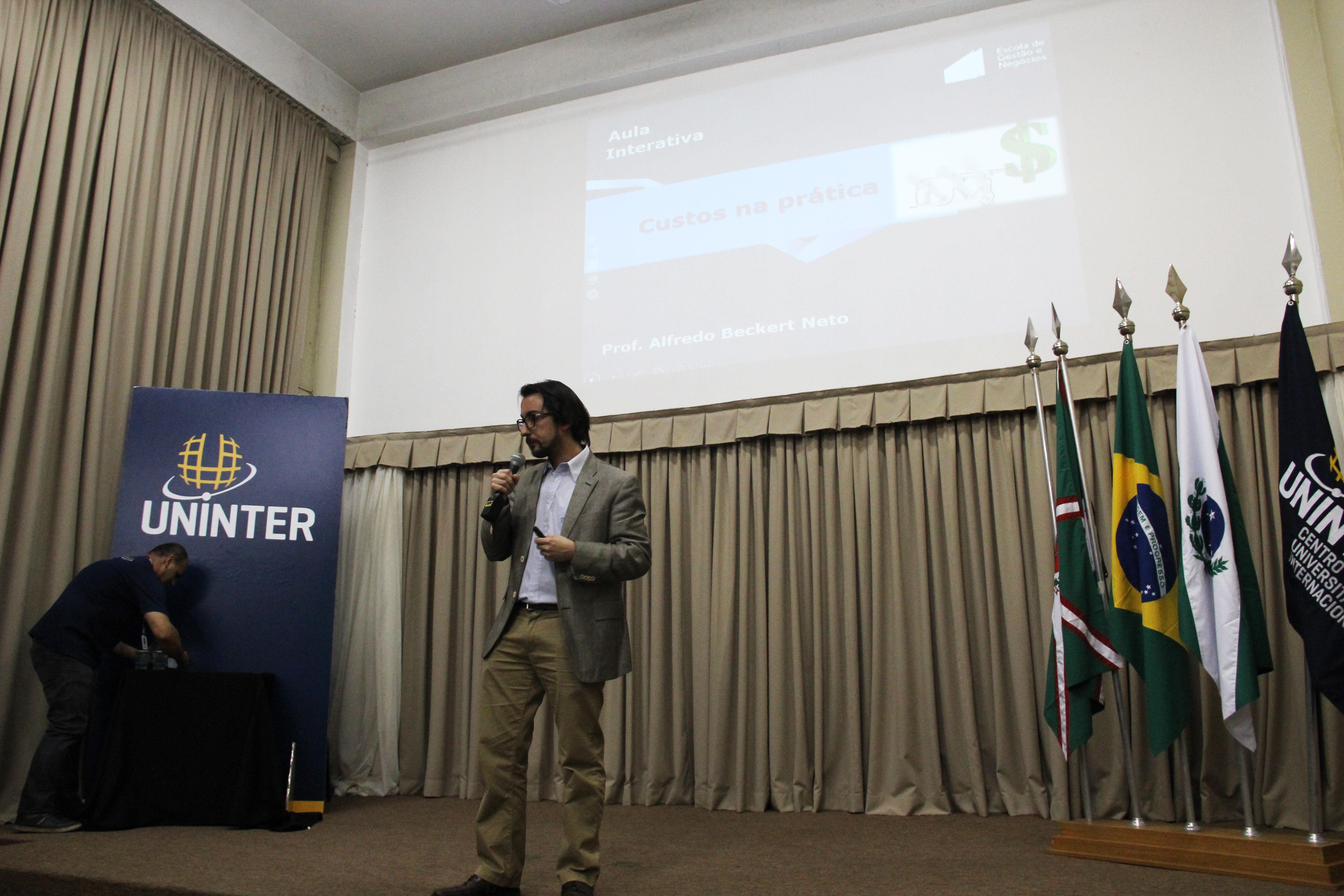 Aconteceu no dia 28 de setembro, no auditório do campus Tiradentes, em Curitiba (PR), uma aula especial sobre Gestão de Custos. Com duração de duas horas, o evento contou com a presença de alunos de diversos cursos como Logística, Gestão Comercial, Administração, nas modalidades de ensino presencial, semipresencial e a distância, com transmissão para alunos de todo o Brasil.