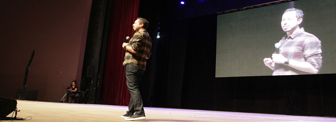 “O empreendedor de hoje é o cara realizador. Todos os macetes que eu trouxe hoje são a partir da experimentação mesmo. Como eu consigo resolver problemas que existem no dia a dia e que ninguém tá olhando pra isso?”, disse. O palestrante citou inúmeras mudanças pelas quais estamos passando e de que maneira elas afetam todos os âmbitos da nossa vida. Segundo ele, a visão de futuro e a inovação precisam fazer parte a formação superior. “As novas empresas estão resolvendo o mesmo problema que os antigos, só que de um jeito diferente. Esse é o novo mundo”, afirmou.