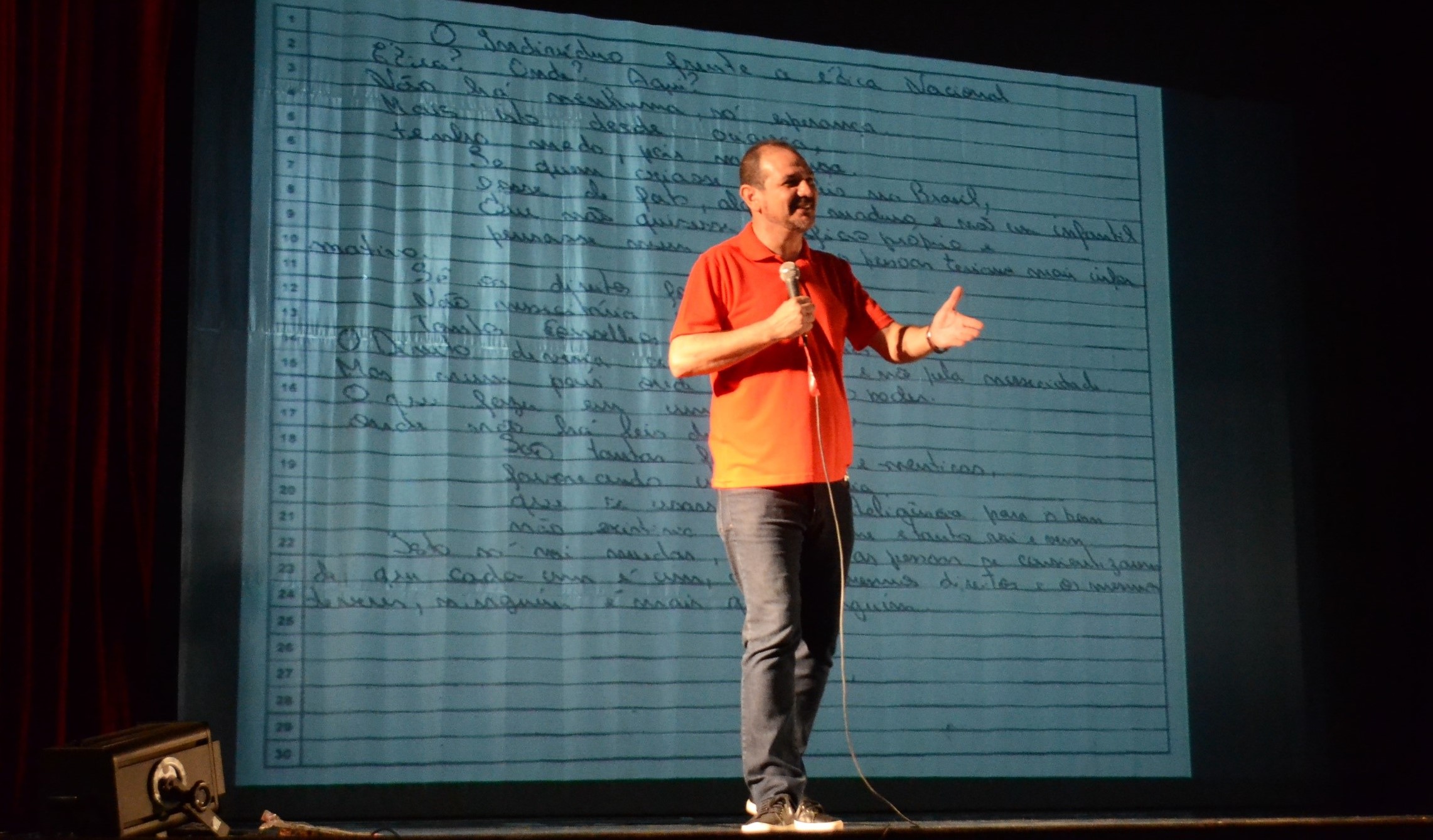Em um clima descontraído, o professor explicou um pouco sobre os pontos mais importantes da redação, exemplificando com textos de outros anos, sobre o que não fazer no dia da prova. O Redação Especial funciona da seguinte maneira: após as palestras, uma equipe de 100 profissionais recebe as redações elaboradas por alunos atendidos pelo projeto, de 136 escolas. As redações são corrigidas e devolvidas. Em 2018 serão três etapas de correção, a primeira acontecendo no final de maio.