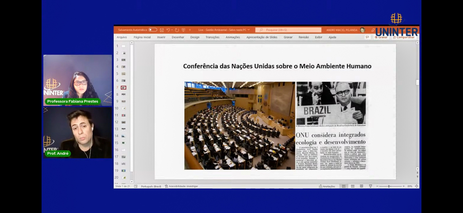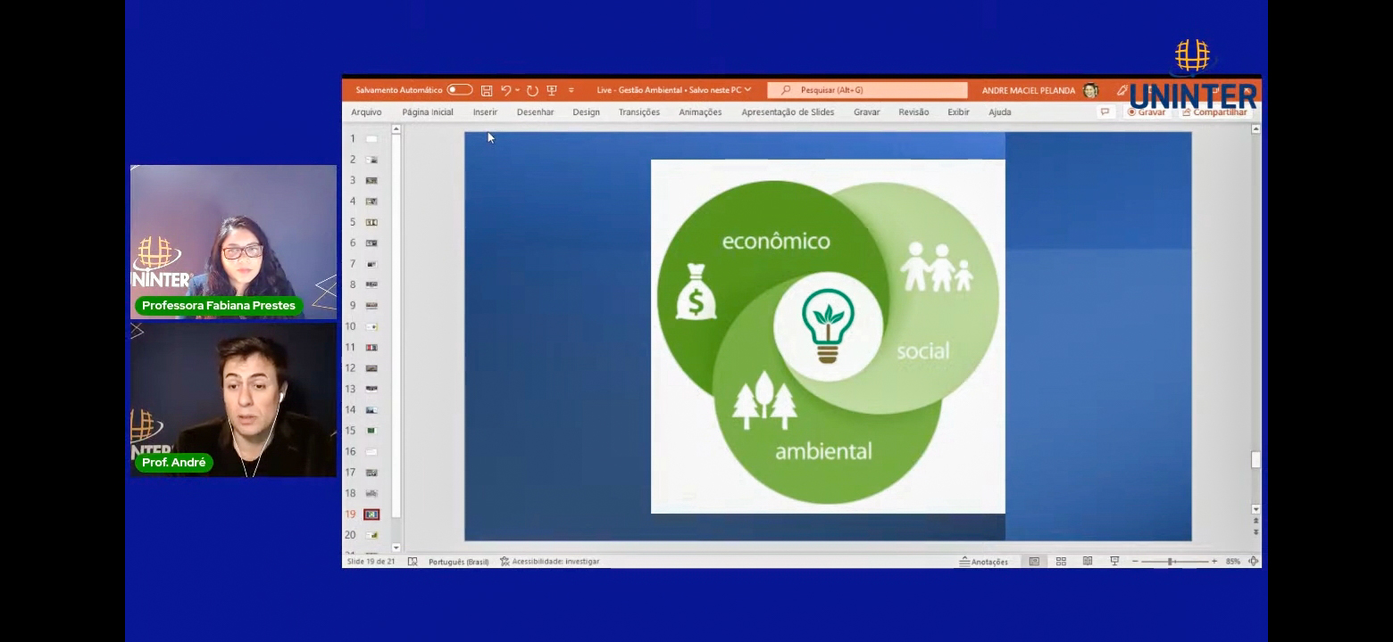 Comandada pela professora tutora no curso de Gerontologia da Uninter, Fabiana Prestes, a live recebeu o biólogo e tutor do curso de Gestão Ambiental da Uninter, André Maciel Pelanda, para debater um pouco mais sobre a preservação ambiental.