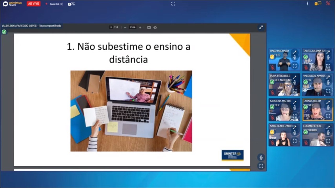 “Mesmo a distância, nós procuramos proporcionar o máximo de canais para que vocês possam interagir e conhecer os seus cursos e os outros cursos da escola, que sempre estão fazendo lives e eventos, com interações nas redes sociais ainda mais descontraídas do que aqui pelo AVA. Este é um momento onde vocês podem tirar dúvidas e interagir”, completou a professora Natali Hoff.