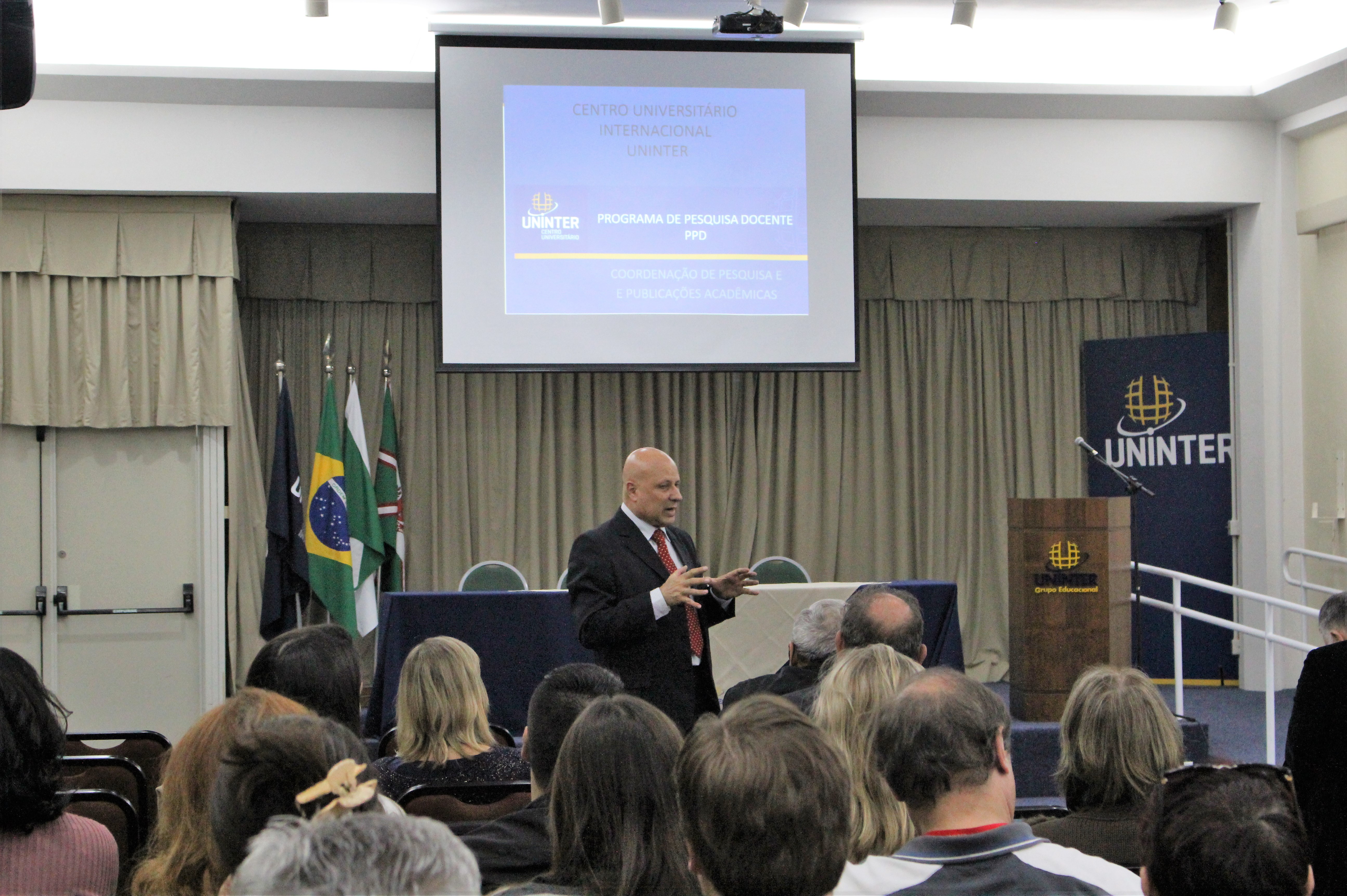 O pró-reitor de Pesquisa e Pós-graduação, Nelson Castanheira, abriu o encontro, que buscou integrar os pesquisadores para que todos tenham ciência do que vem sendo feito nesta área na instituição, além de apresentar os membros do conselho de pesquisa e abordar as obrigatoriedades de cada grupo de pesquisa.