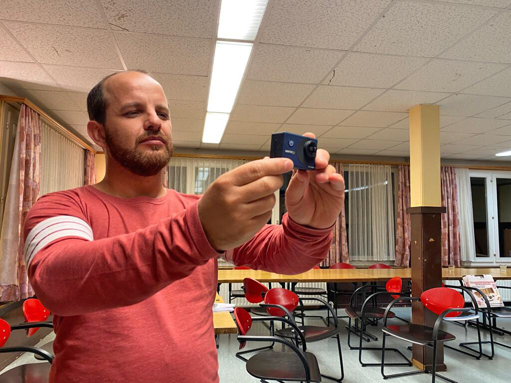Para a produção do documentário, ele utilizou o kit de comunicação que é distribuído para todos os alunos do curso de Comunicação Social da Uninter, composto por câmera, tripé, fones de ouvido e um gravador de áudio em alta qualidade (na foto, ele exibe a câmera). Para conferir o trabalho dele, basta acessar o link aqui.