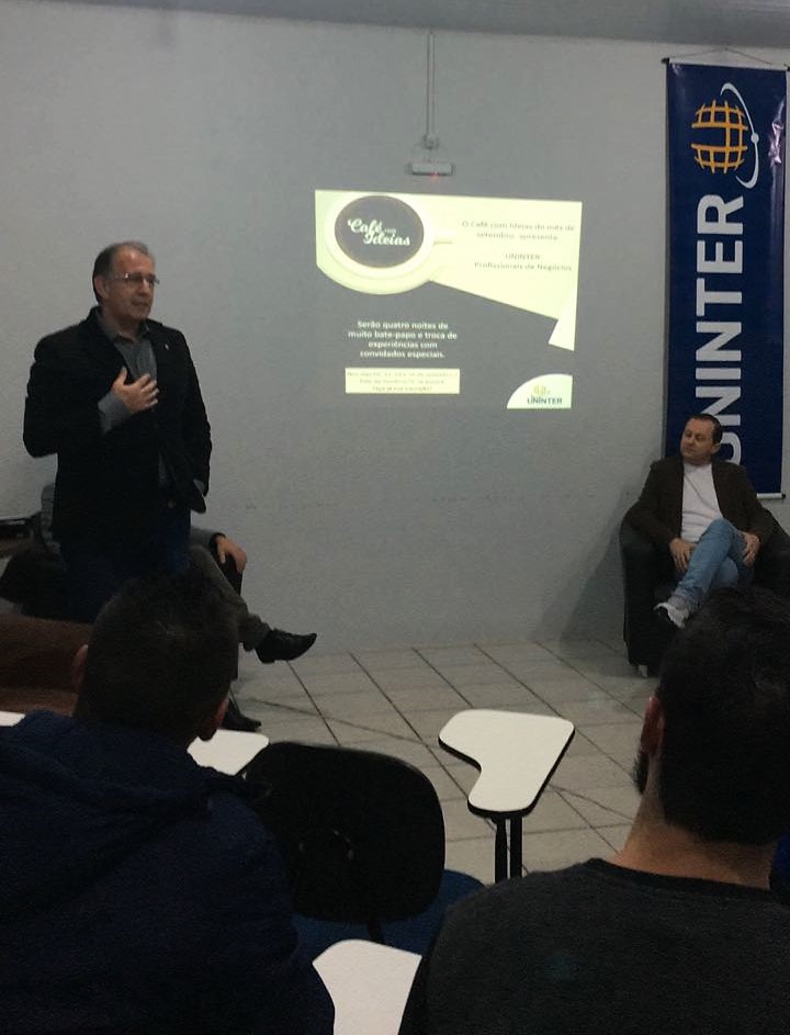 E se todos os meses você tivesse um encontro para tomar um café e discutir assuntos variados, como educação, administração e saúde emocional no trabalho? Foi para isso que o polo de apoio presencial da Uninter em Sombrio (SC) criou em 2016 o “Café com Ideias”. Os eventos podem ser abertos ao público, dependendo do espaço disponível e da aderência de alunos e funcionários, ou restrito a alunos da instituição.