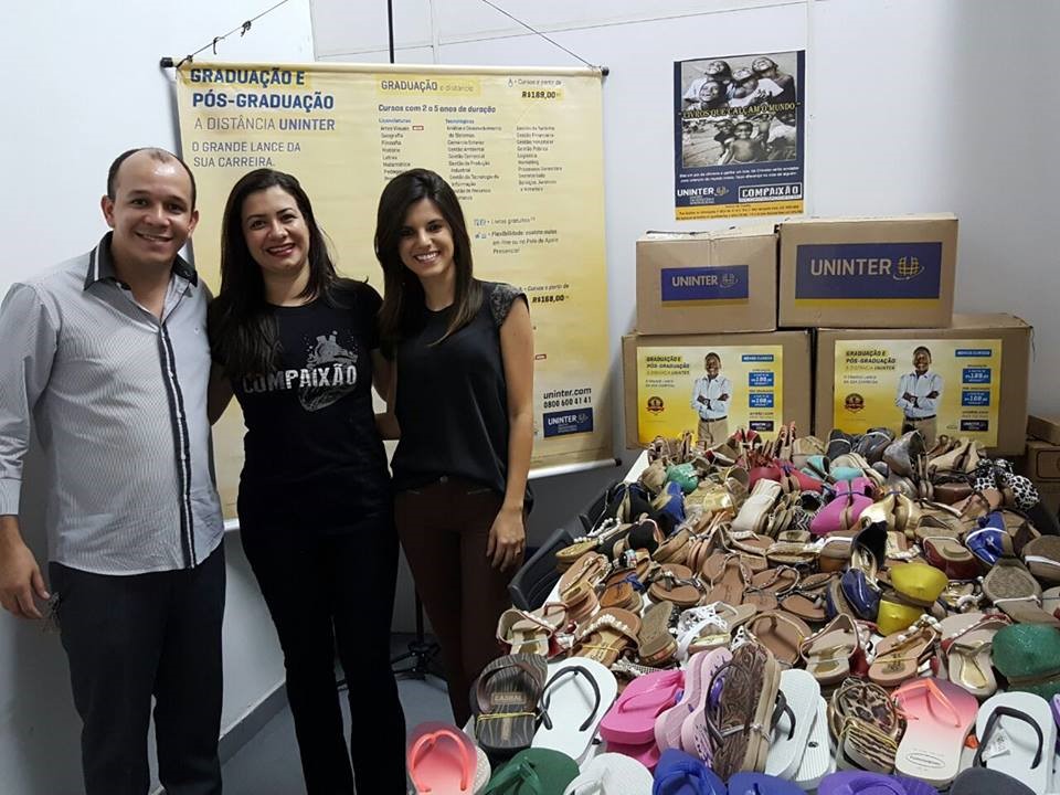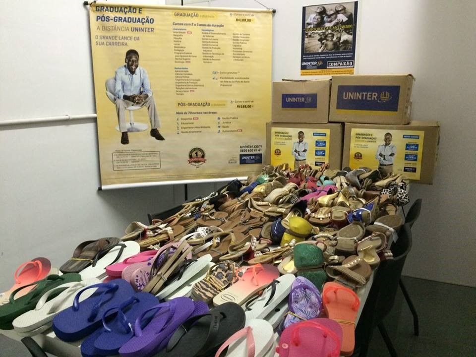 O polo da UNINTER em Goiânia (GO) arrecadou mais de 280 pares de chinelos desde o lançamento da campanha “Livros que calçam o mundo”, em 2 de setembro. O material arrecadado foi enviado a pessoas carentes no estado do Pará e para mulheres e crianças em um campo de refugiados do Líbano e da Síria, no Oriente Médio.