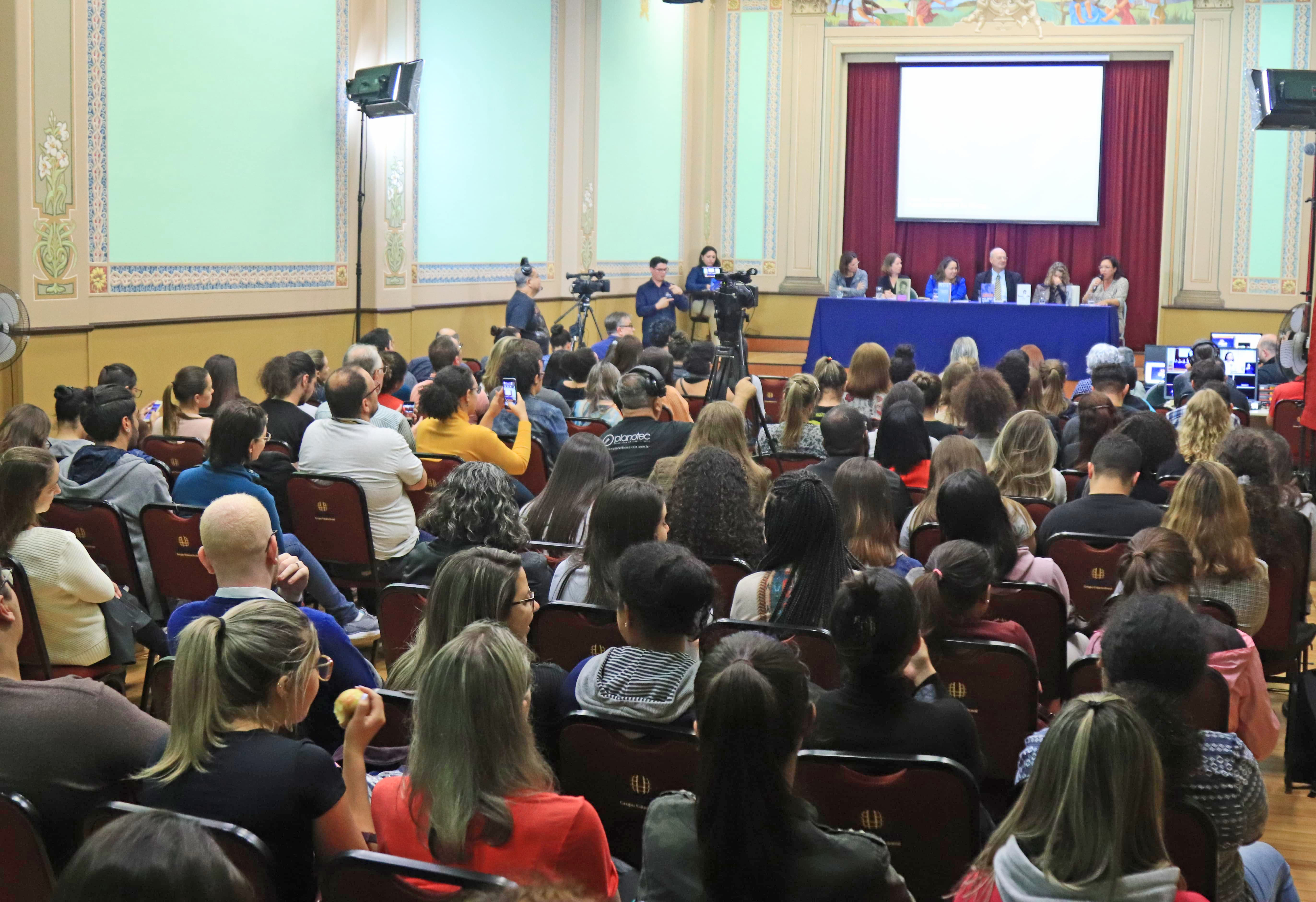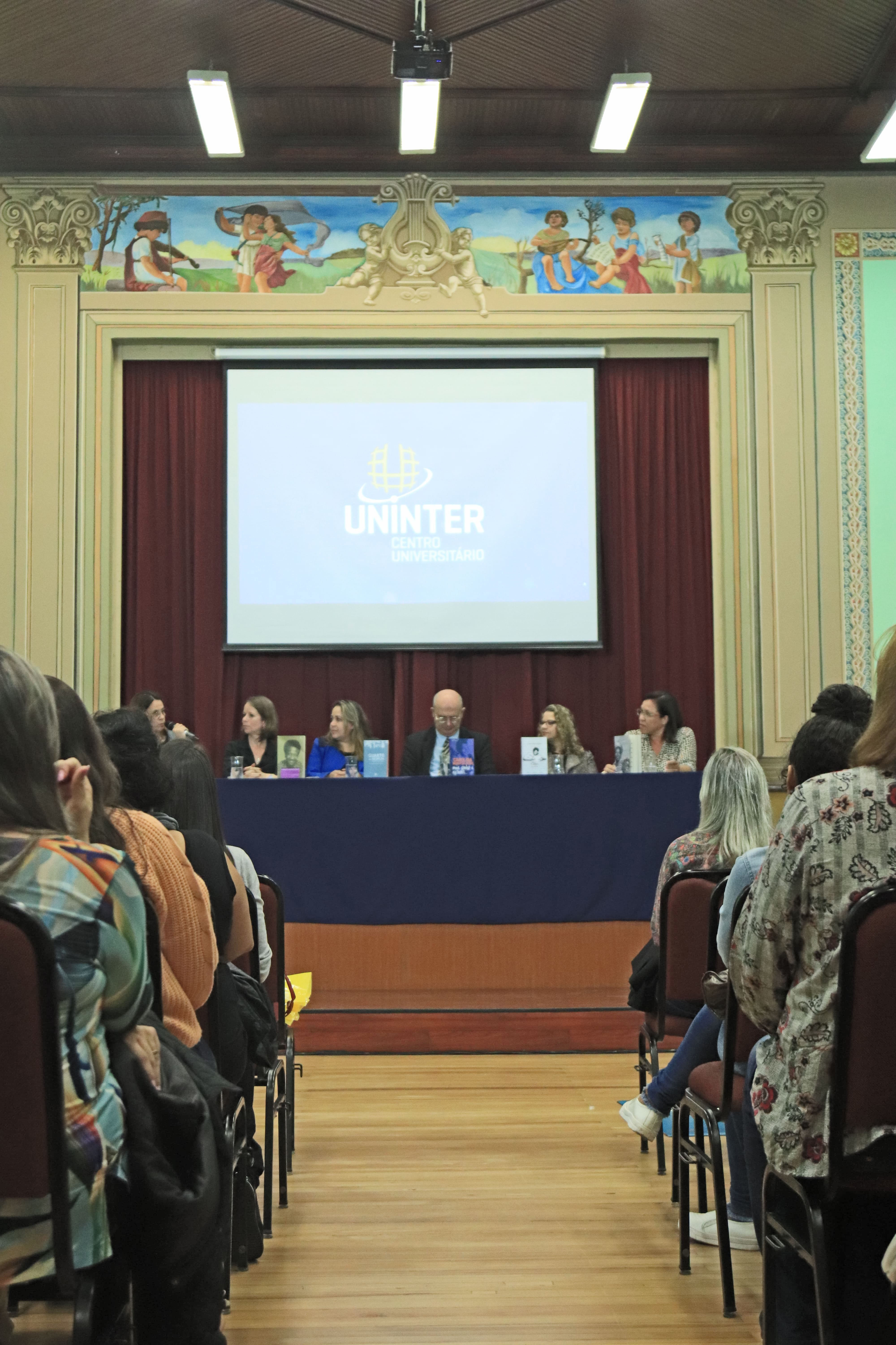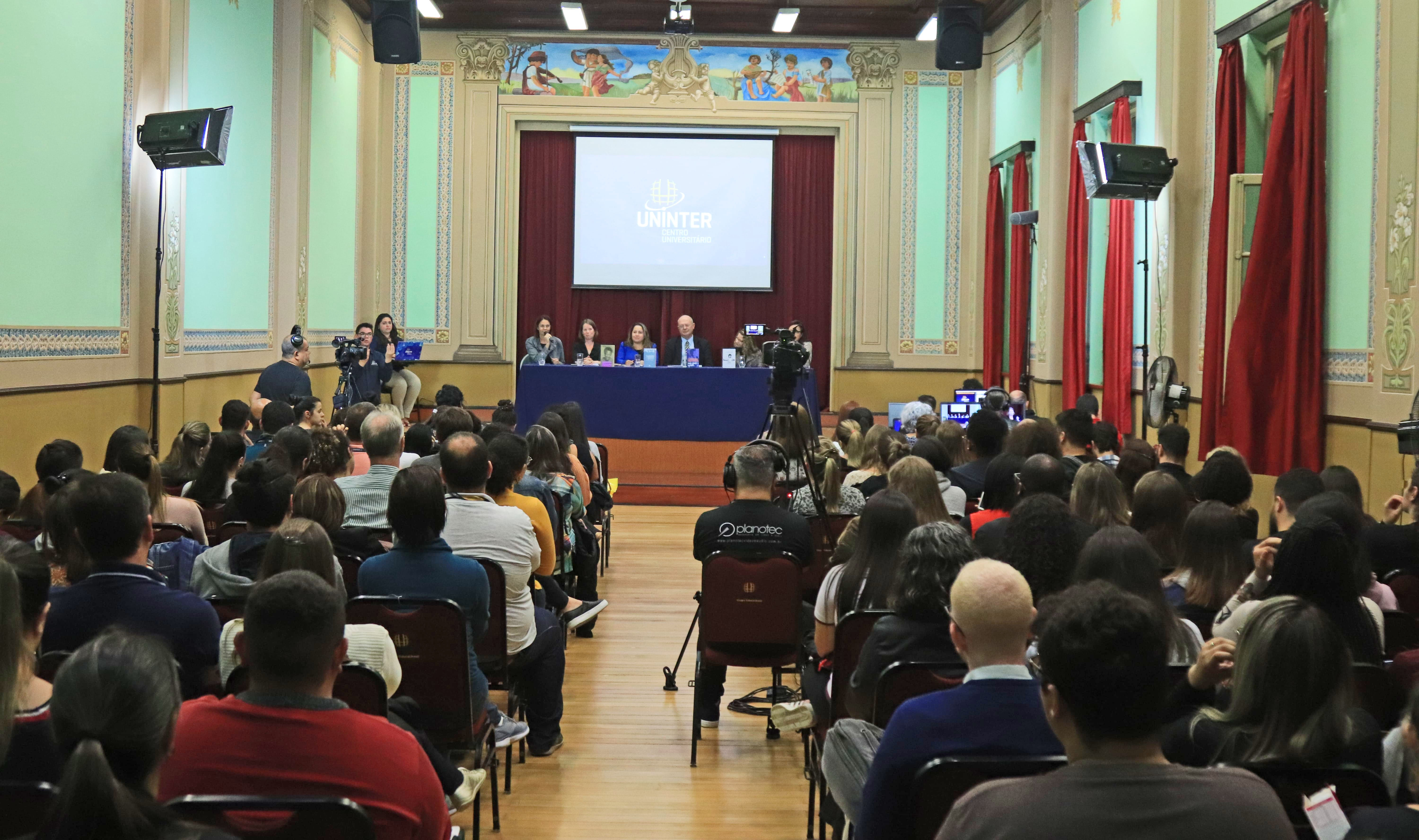 Participaram da mesa de abertura o vice-reitor da Uninter, Jorge Bernardi, a diretora da Escola Superior de Educação, Dinamara Machado, a coordenadora da área de linguagens e sociedade, Deisily de Quadros, a coordenadora de pesquisa, Desire Dominschek, a coordenadora de literatura da Fundação Cultural de Curitiba, Mariane Filipak, e a professora e tutora do curso de Letras, Maristela Gripp.