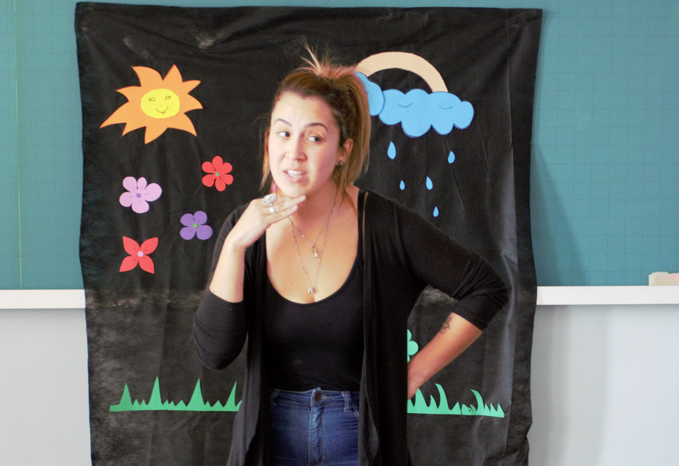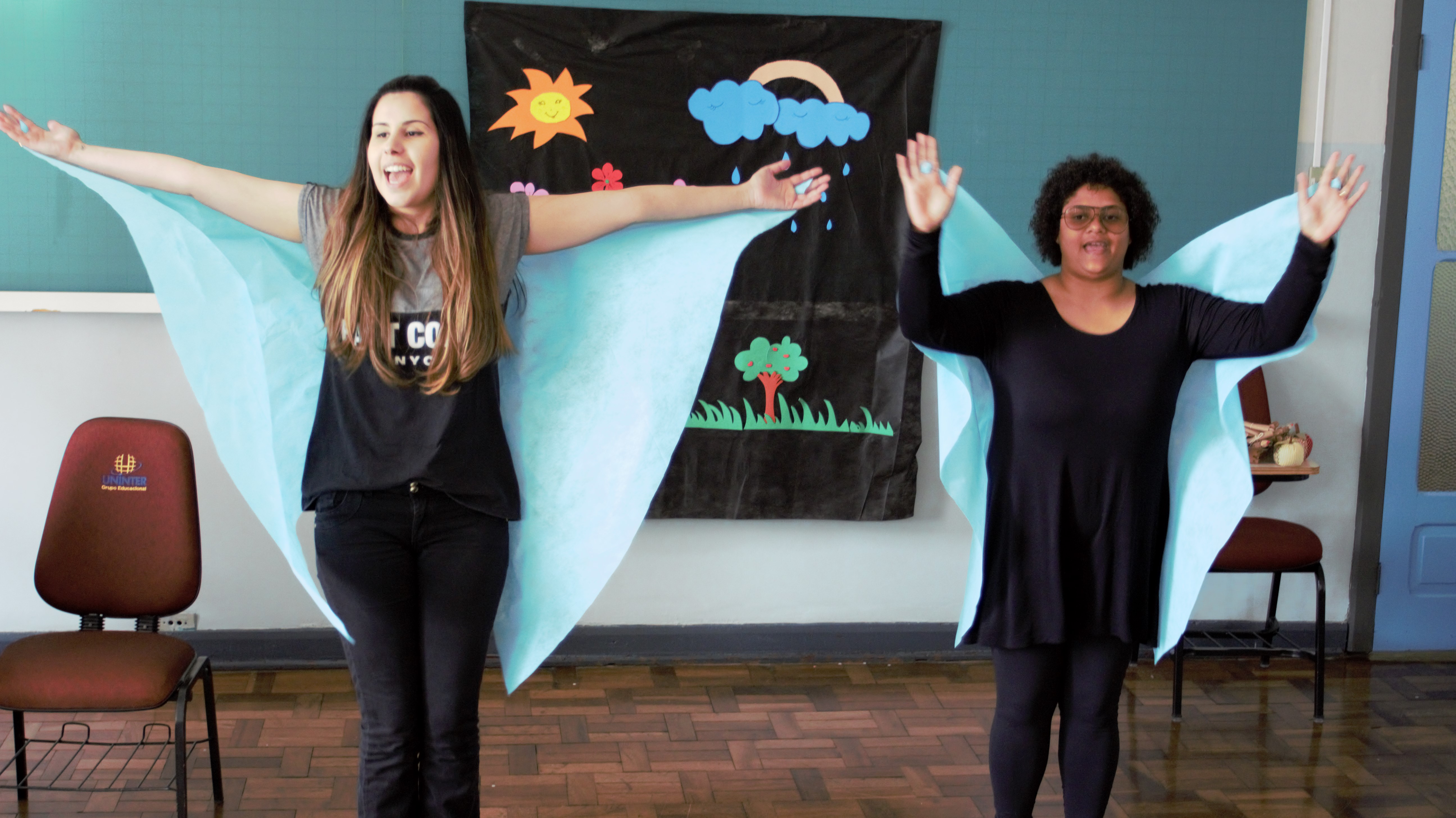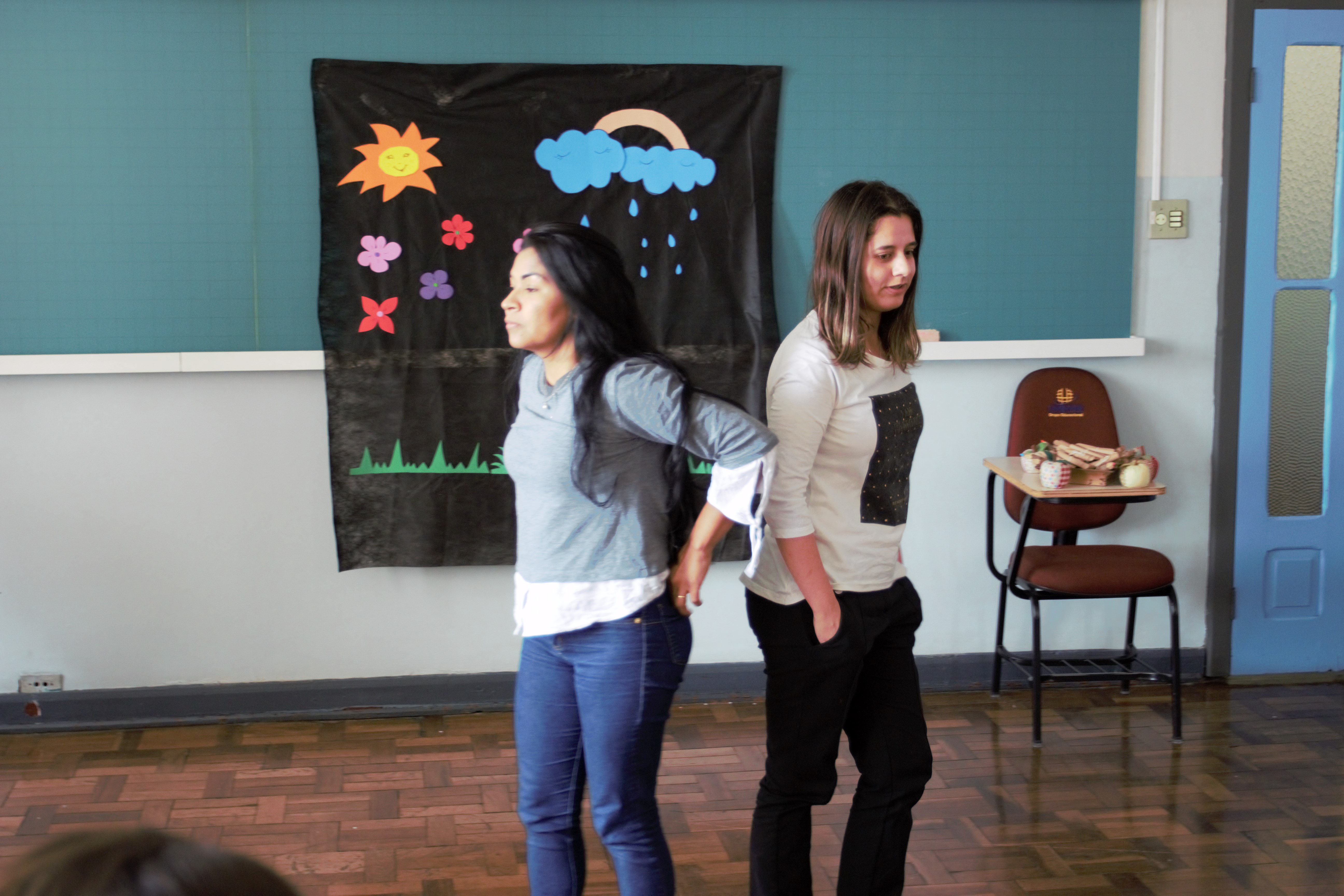 Ao todo, 19 alunas recitaram poemas infantis para cerca de 100 convidados, também de pedagogia. Entre as poetas escolhidos estão os brasileiros Pedro Bandeira, Cecília Meireles, José Paulo Paiva, Vinicius de Moraes, entre outros. Luciana destaca que as alunas estavam ansiosas para esse momento. “Foram duas semanas de ensaio. Na última aula pedi para que apresentassem para mim, porque também é uma maneira de elas desenvolverem a questão da oralidade e a expressão corporal”, diz.