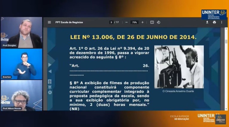 No entanto, de acordo com o professor Douglas Lopes, que atua na área de Humanidades da Escola Superior de Educação (ESE) da Uninter, a lei é pouco cumprida e, quando acontece, não há uma metodologia didático-pedagógica planejada e eficiente, pensada para complementar a formação dos estudantes. Uma solução apontada pelo docente são os cineclubes.