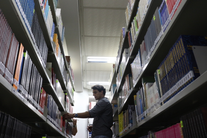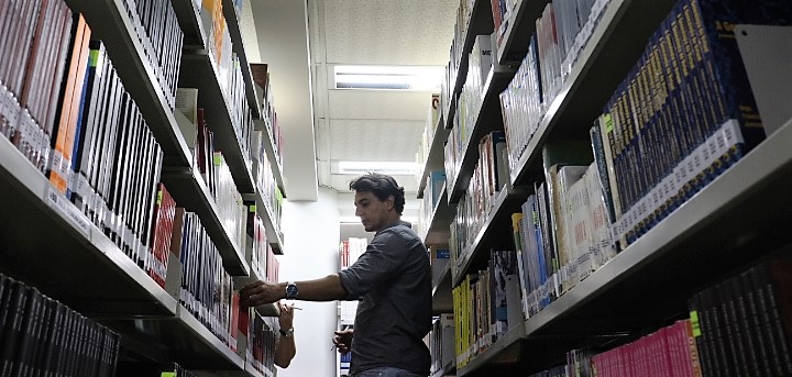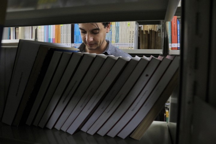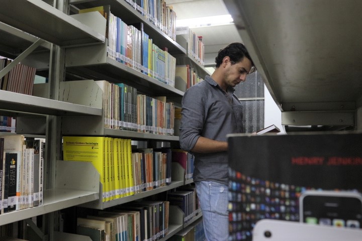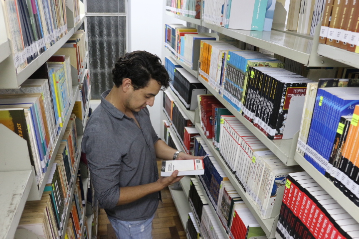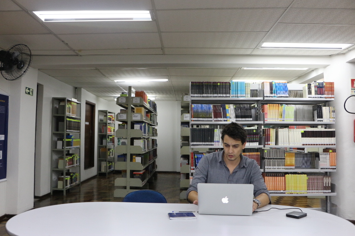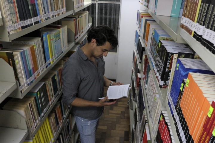 Sentado em meio aos livros, olhos graúdos e curiosos expressam intimidade com os autores na biblioteca. Em busca de conhecimento, já conta 14 anos de formação superior dividida entre graduações, pós-graduações e mais recentemente o mestrado internacional concluído em 2015. Agora é a vez do doutorado.