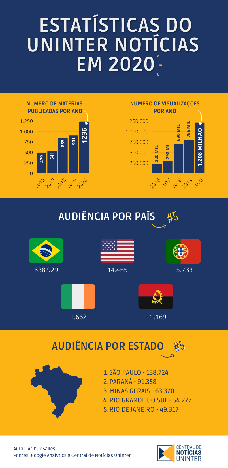 Confira abaixo mais informações sobre as estatísticas do Uninter Notícias em 2020.