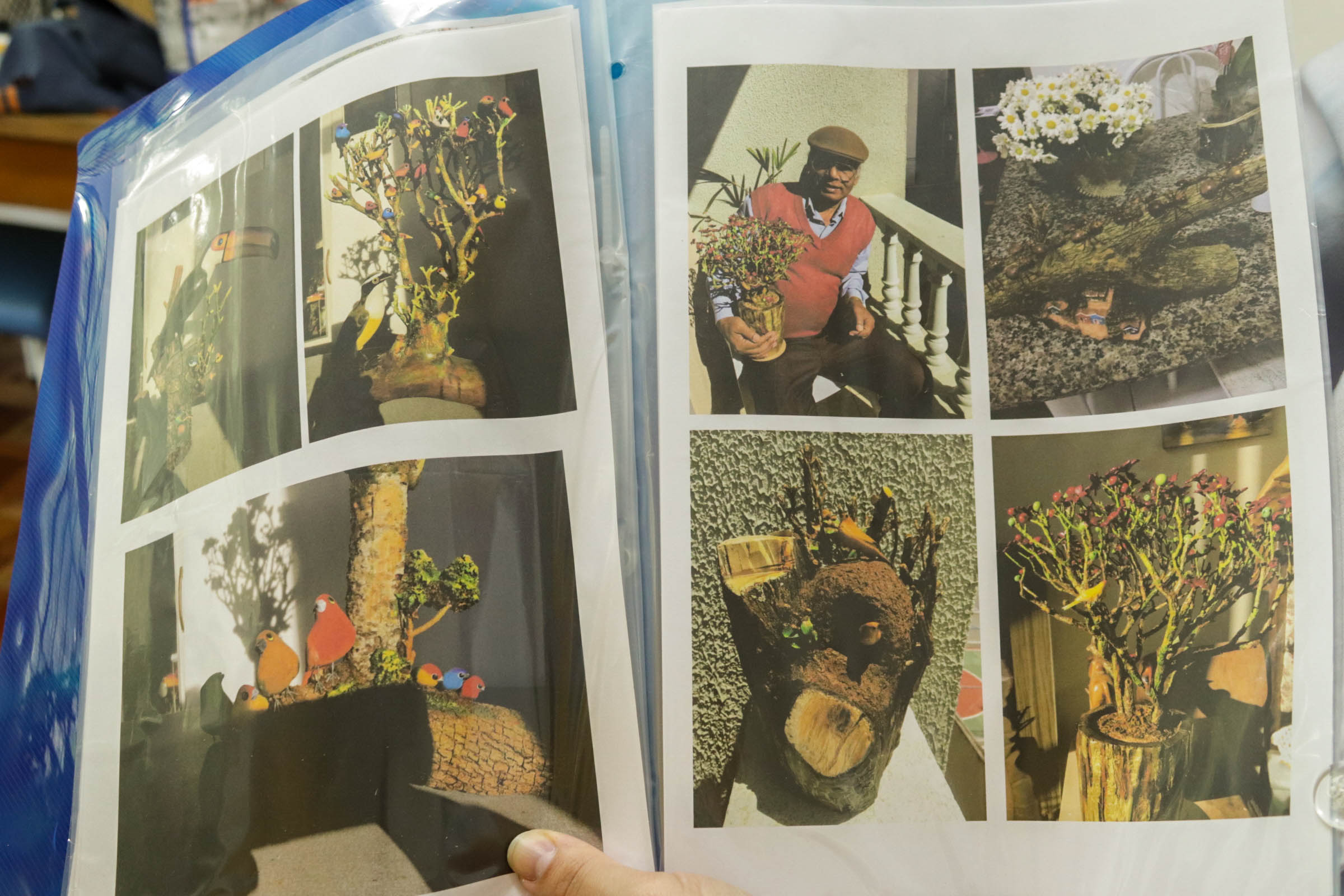 Crezoz Rodrigues, de 66 anos, faz entalhamento em madeira, trabalho que desenvolve desde a década de 1970. Já Orlando de Sousa, de 78 anos, pinta panos de prato e começou a desenvolver a prática dentro do lar. Ambos acreditam que a atividade faz bem não só para passar o tempo, mas também para se manterem ativos e com saúde mental.