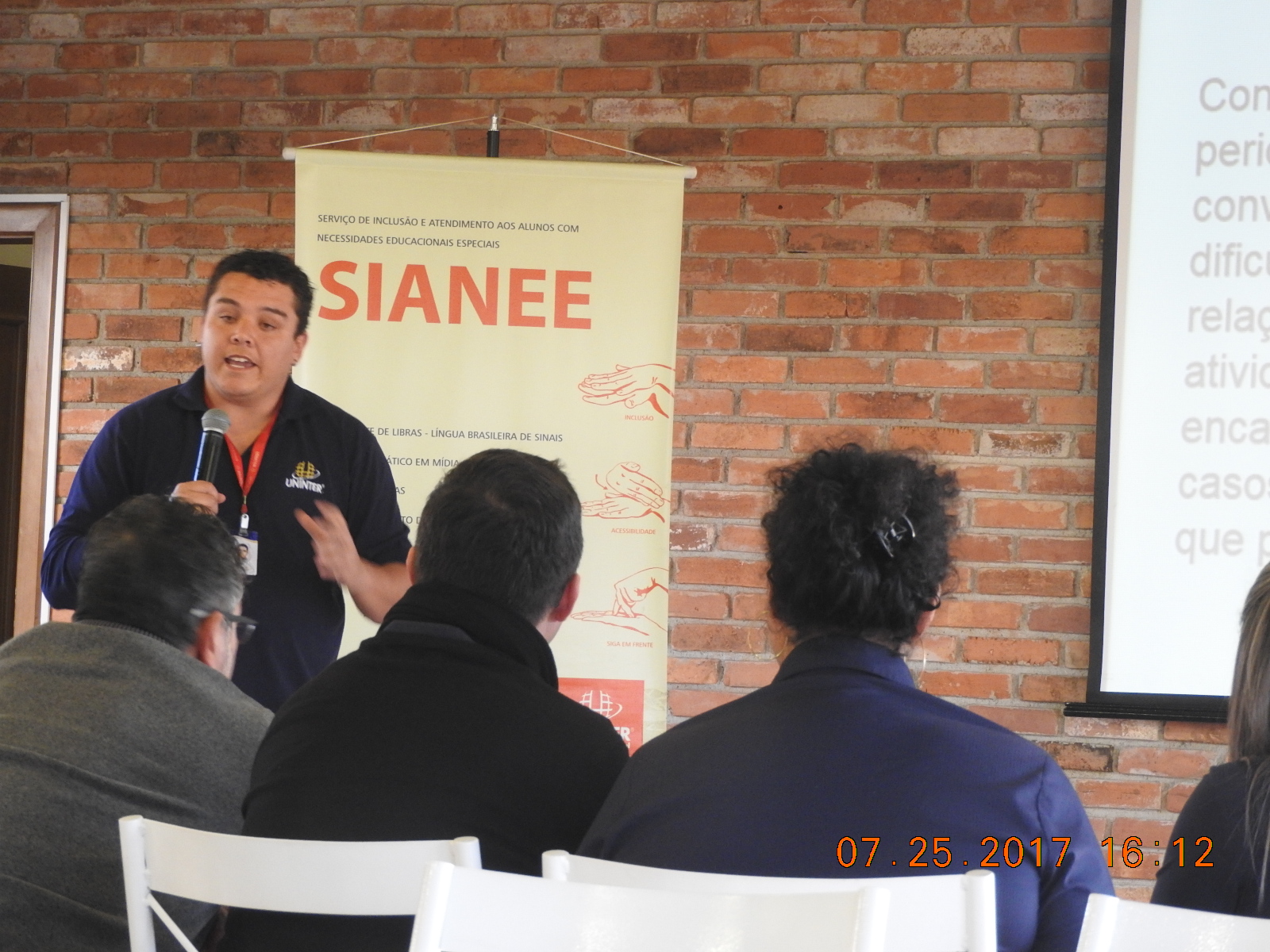 Dada a importância da inclusão de todos à educação, há 12 anos a Uninter criou o SIANEE (Serviço de Inclusão e Atendimento aos Alunos com Necessidades Educacionais Especiais), coordenado por Leomar Marchesini. E com isso, foi realizado nos dias 24, 25 e 26, na sede Araucárias, o “IV Seminário Anual dos Tradutores Intérpretes de Libras e Colaboradores do SIANEE”, com o objetivo de promover a educação continuada dos profissionais do SIANEE, mediante palestras. Estiveram presentes os 19 colaboradores do setor.