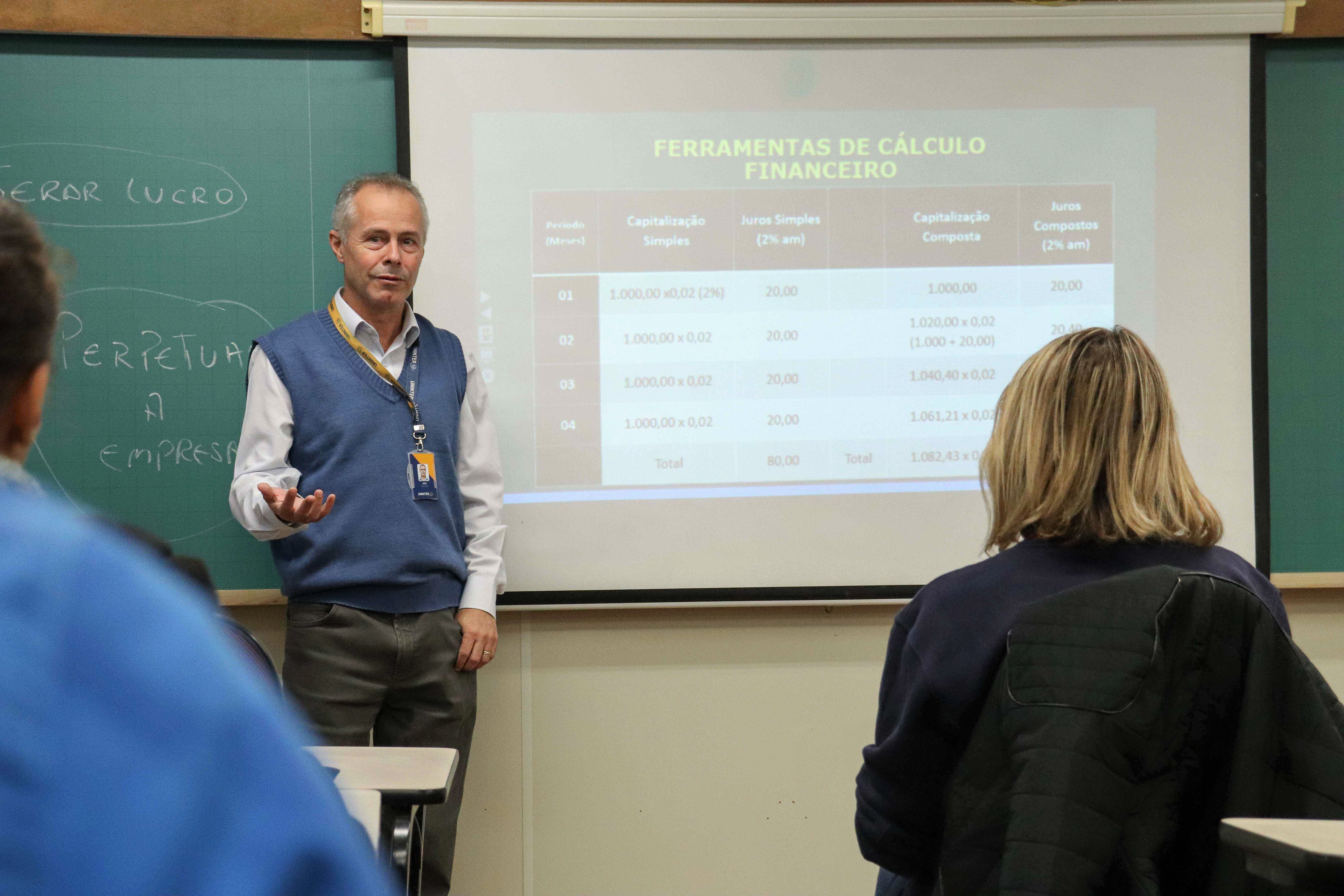 Segundo Persona, a ideia dessas aulas é introduzir o tema de finanças e transmitir alguns conceitos fundamentais para que os futuros empresários saibam administrar melhor seus recursos. “Estamos apresentando diferenças, como transações simples e compostas. Vamos entrar no aspecto da estrutura financeira, como funciona, quanto vai pagar, receber, necessidade de se verificar a viabilidade econômica e financeira de todos os investimentos que uma empresa faz de forma que os alunos possam administrar de forma correta”, explica.