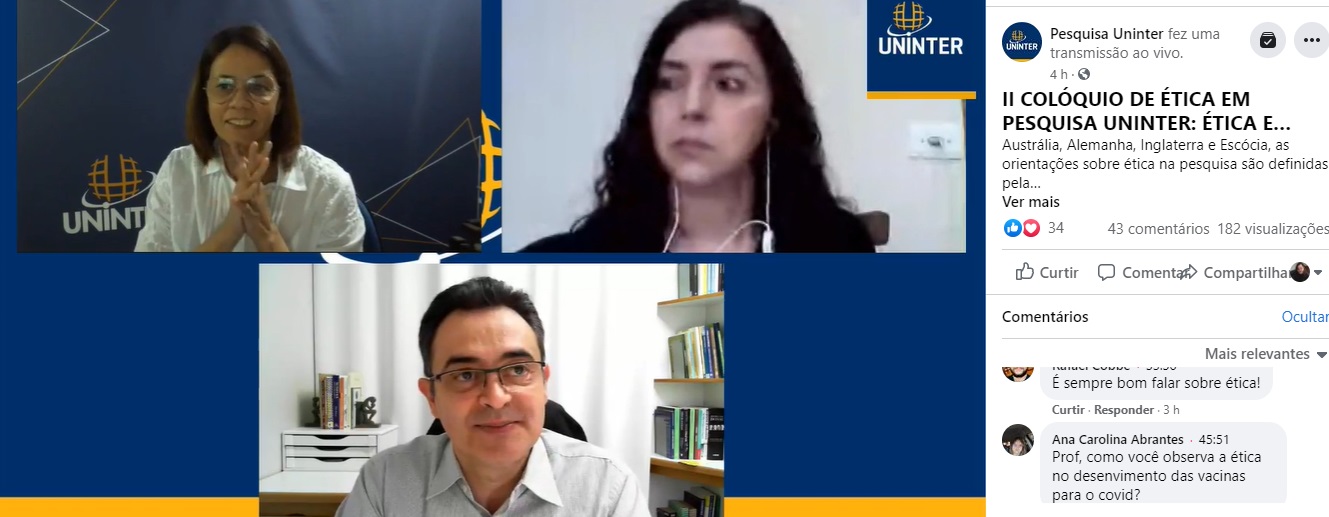 Esses e outros tópicos sobre o assunto foram abordados no II Colóquio de ética em pesquisa Uninter: Ética e pesquisa em educação. O bate-papo foi transmitido ao vivo, através da página de Pesquisa da Uninter no Facebook e pelo canal do Youtube do Grupo Uninter, e continua disponível para todos os interessados.