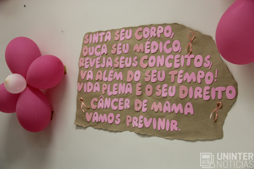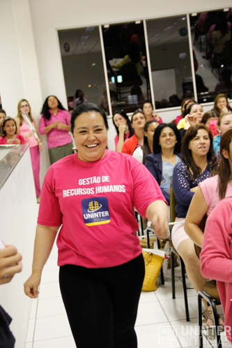 No dia 15, os tutores entregaram flores para os alunos como um gesto de afeto aos futuros professores. Alunos dos cursos de Pedagogia, Gestão de Recursos Humanos, Logística, Gestão da Produção Industrial e Gestão Comercial participaram confeccionando camisetas dos seus cursos na cor rosa como forma de adesão ao evento. Em seguida, a aluna Gleice de Godoi compartilhou as dificuldades enfrentadas ao lidar com o câncer de mama até alcançar a cura. Ressaltou aos presentes a importância do auto exame para um diagnóstico precoce da doença.