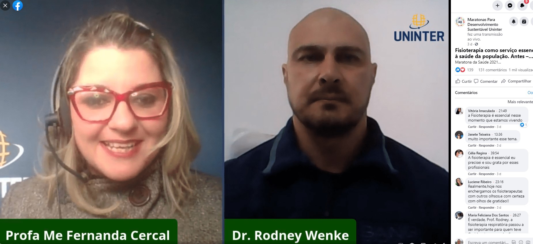 O fisioterapeuta Rodney Wenke falou sobre o assunto durante a 2ª Maratona de Saúde com o tema “Pandemia: tendências e aprendizados”, realizada pela Escola de Saúde da Uninter. Ele participou do evento no último dia 30.abr.2021, com a palestra “A fisioterapia como serviço essencial à saúde – antes, durante e depois”, mediada pela coordenadora do curso de Fisioterapia da Uninter, Fernanda Cercal. A palestra foi gravada e está disponível ao público. Para assistir, clique aqui.