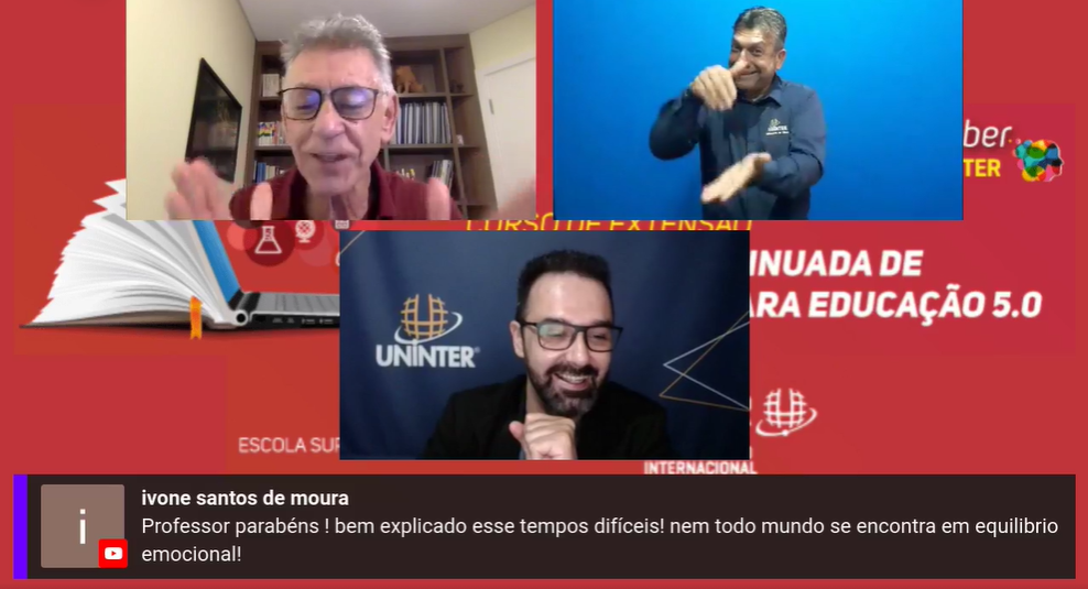 José Leopoldo e André debateram sobre o tema Psicomotricidade no desenvolvimento infantil no primeiro e segundo blocos da Formação continuada de professores para educação 5.0, realizado pela Escola Superior de Educação da Uninter no dia 11.fev.2021. A mediação do bate-papo foi realizada pelos professores Bruno Simão e Jucimara Bandeira. Os vídeos continuam disponíveis para acesso, através da página do Facebook e canal do Youtube.