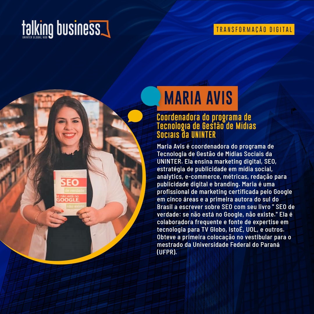 O primeiro Talking Business será realizado no dia 30 de setembro, ao vivo às 19h, com tradução simultânea, e as demais edições já contam com data marcada nos meses de outubro, novembro e dezembro. Para acompanhar as novidades e realizar a inscrição para o evento, basta clicar aqui. O assunto também foi tema do programa Conversa com o Reitor, da Rádio Uninter, e para acompanhar o bate-papo na íntegra, acesse o link.