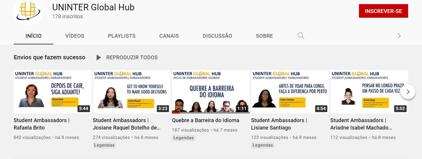 A Uninter, que ultrapassou as barreiras do Brasil e hoje tem polos em outros quatro países, criou em 2020 o programa Global Hub. A ação busca ajudar alunos interessados em temas mundiais fornecendo contexto, conteúdo, recursos e conexões para que os mesmos absorvam as melhores experiências internacionais. Oferece a estes alunos experiências de pesquisa e aprendizado com professores e profissionais que se comunicam de maneira clara, a fim de desenvolver novas formas de pensar voltadas a oportunidades globais.