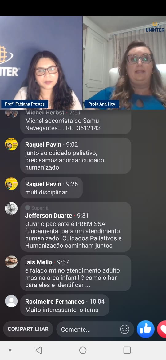 Para falar sobre a importância de permitir ao paciente que escolha qual tratamento de saúde ele prefere seguir, a professora do curso de Gerontologia – cuidado ao idoso da Uninter, Ana Paula Hey, fez uma live para os alunos do curso falando sobre os tratamentos paliativos utilizados com pessoas que sofrem de transtornos mentais.