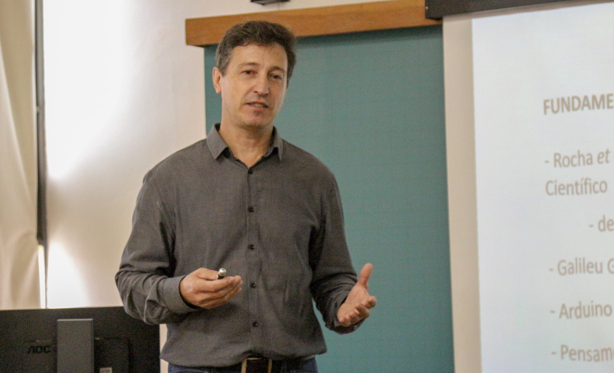 Ao entrar na sala 53 do campus Divina da Uninter na manhã do último dia 19, ouvia-se uma conversa leve e descontraída. Álvaro Crovador, aluno do Mestrado em Educação e Novas Tecnologias, havia chegado cedo para a defesa da dissertação “O uso do arduíno em sala de aula no experimento do pêndulo simples de Galileu Galilei”, que aconteceria às 10 horas. Professor de física no ensino superior, o mestrando se mostrava bastante confiante para o desafio que se aproximava.