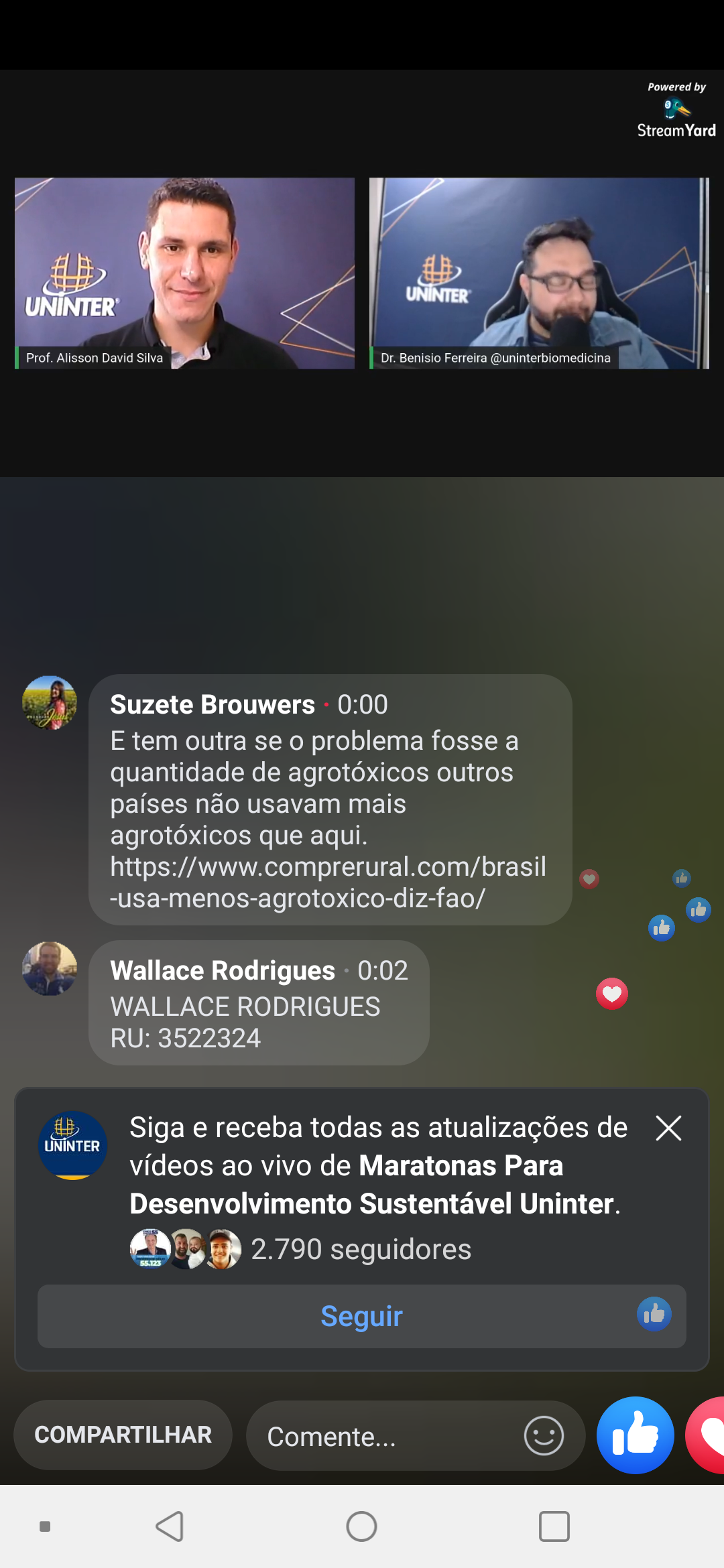 Esse assunto foi discutido durante a Maratona Ecos do Brasil Uninter, realizada no dia 25.set.2020, pela Escola de Saúde, Biociência, Meio Ambiente e Humanidades da instituição. A palestra “Utilização indiscriminada de agrotóxicos, como isso afeta a biodiversidade”? foi transmitida pela página Maratonas Para Desenvolvimento Sustentável Uninter no Facebook.