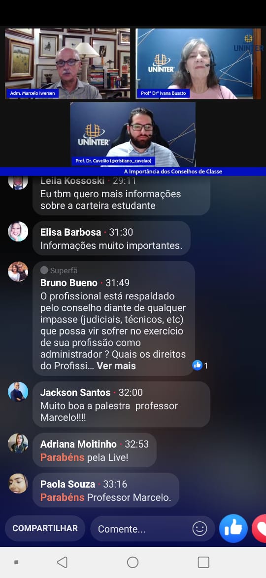 Para falar da importância dos profissionais da saúde estarem habilitados em seus respectivos conselhos profissionais, o coordenador do curso de Auditoria em Saúde da Uninter, Cristiano Caveião, convidou para um bate-papo online o administrador e professor Marcelo Iwersen, e a coordenadora do curso de Gestão em Saúde Pública da Uninter, professora Ivana Busato.