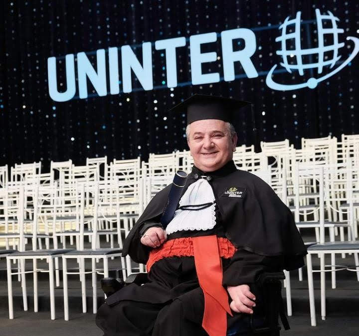 Na Uninter, as limitações são encaradas como oportunidade de melhoria e dedicação para que os estudantes recebam o melhor atendimento e formação profissional. Exemplo disso é a trajetória do egresso Edson Bazam, de 54 anos, que conquistou o diploma do curso de Direito este ano, em Curitiba (PR).
