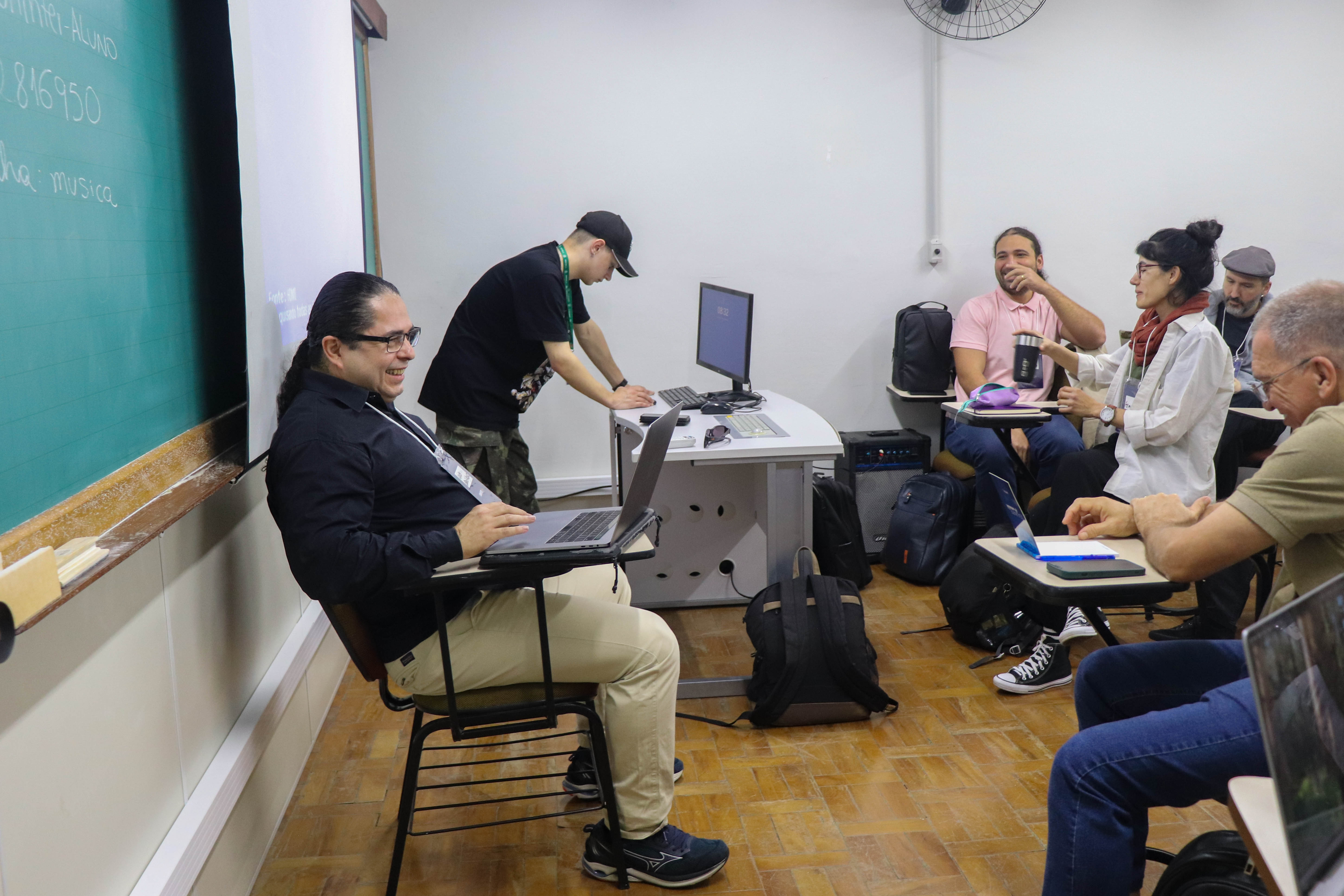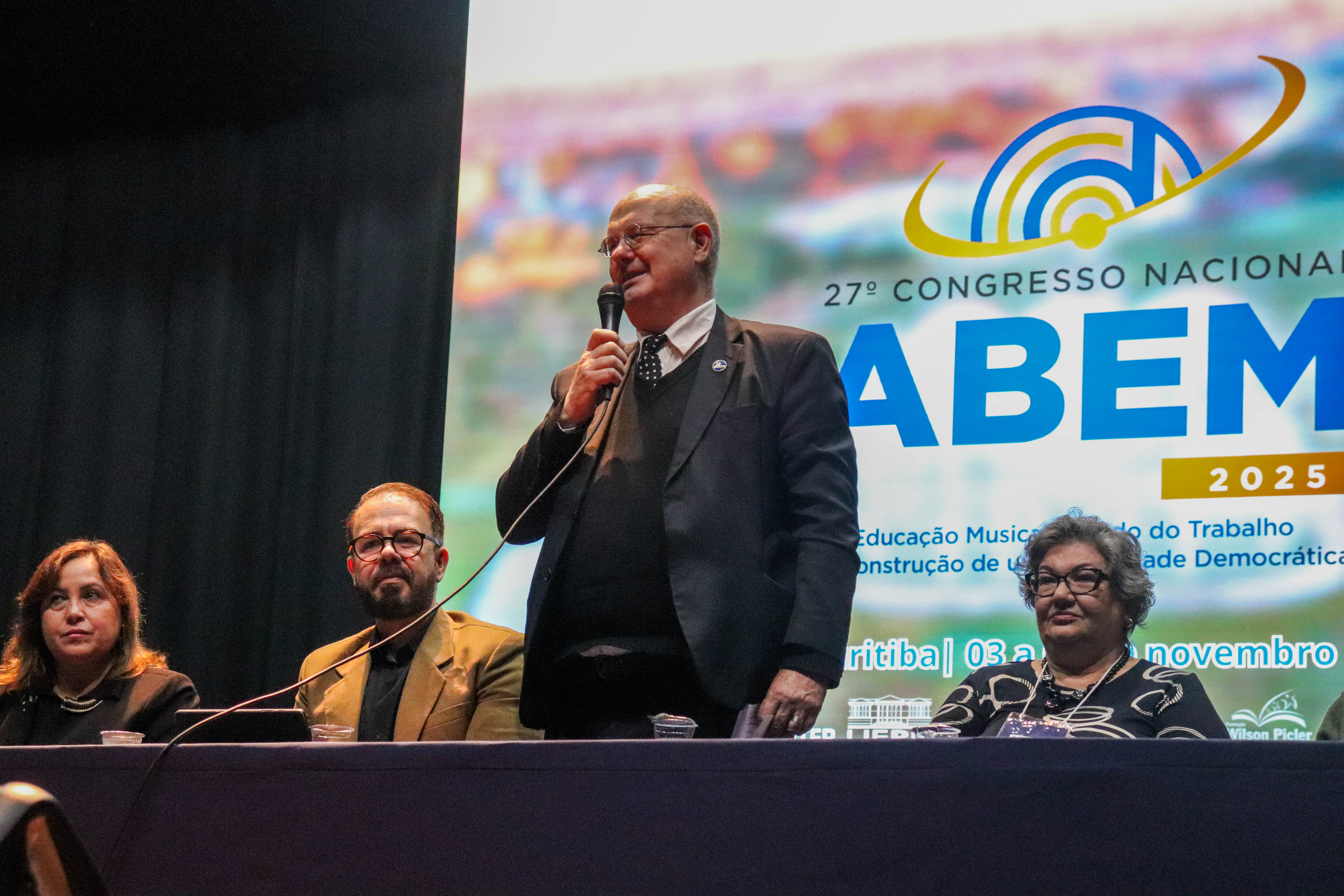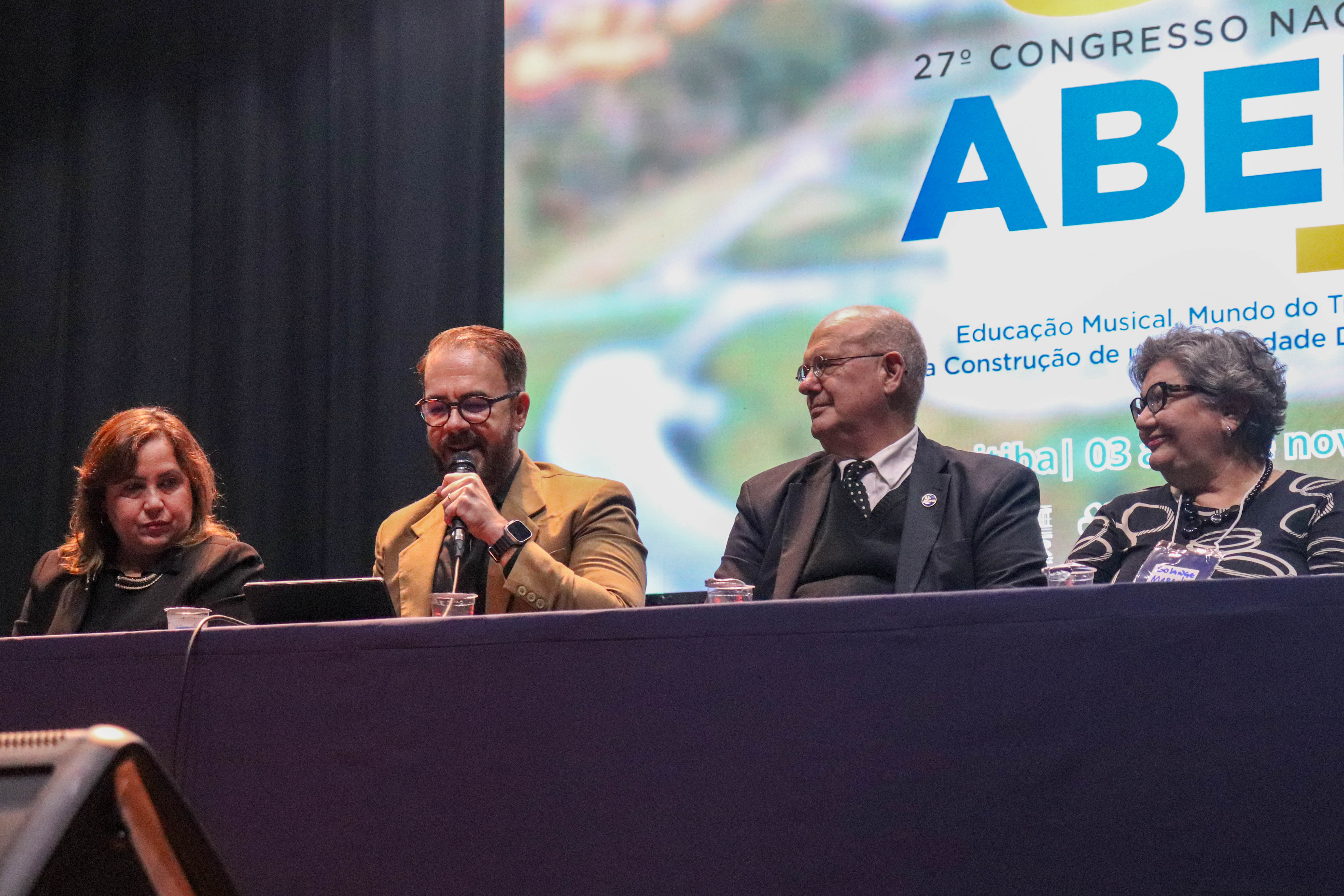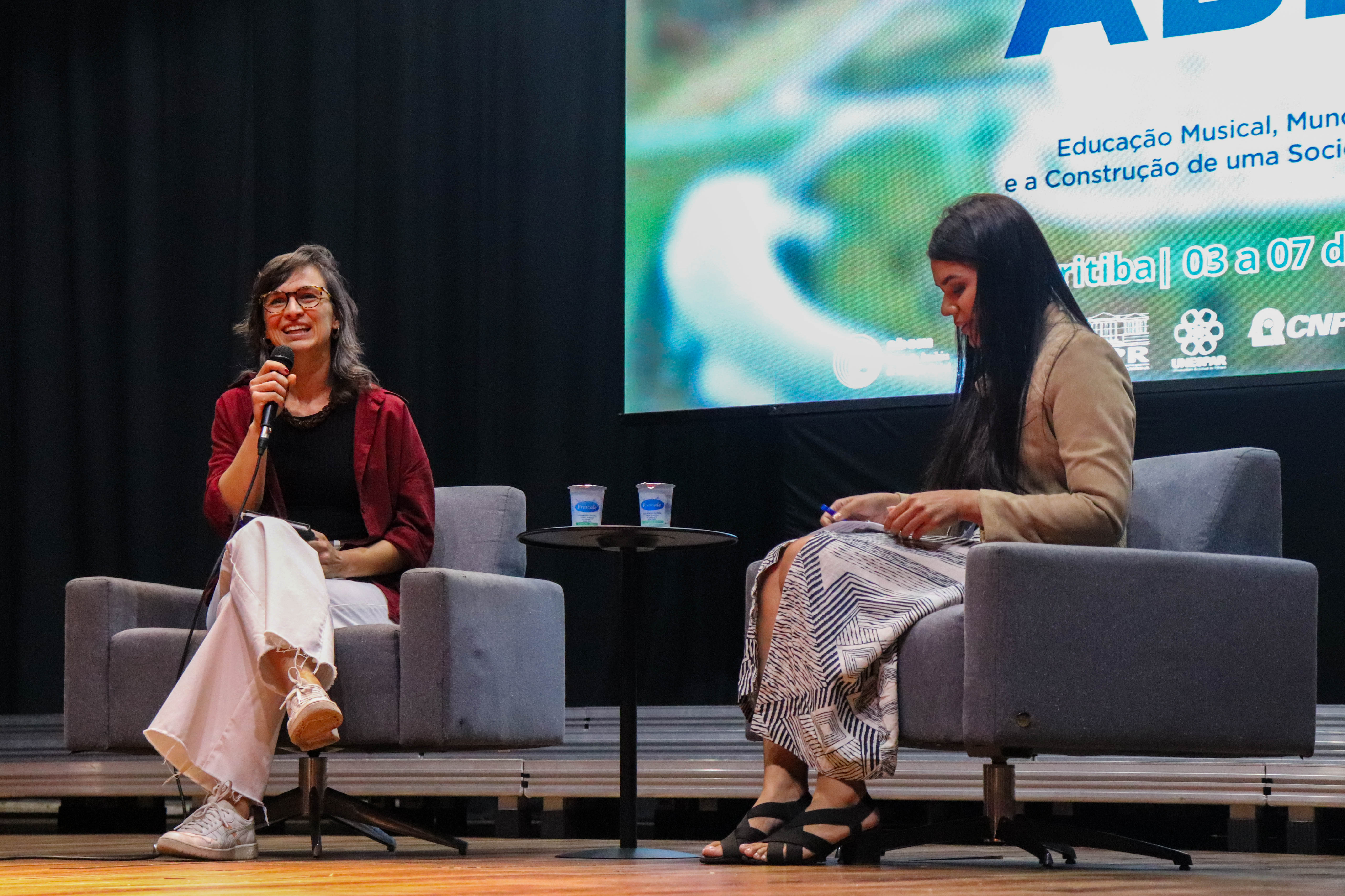 A Educação musical, mundo do trabalho e construção de uma sociedade democrática, tema desta edição, também foi o debate da conferência de abertura, conduzido pela professora Kelem Ghellere Rosso, do Instituto Federal do Paraná (IFPR) e da UFPR, com a professora Tainá Façanha, da Universidade Federal do Pará (UEPA), na mediação.