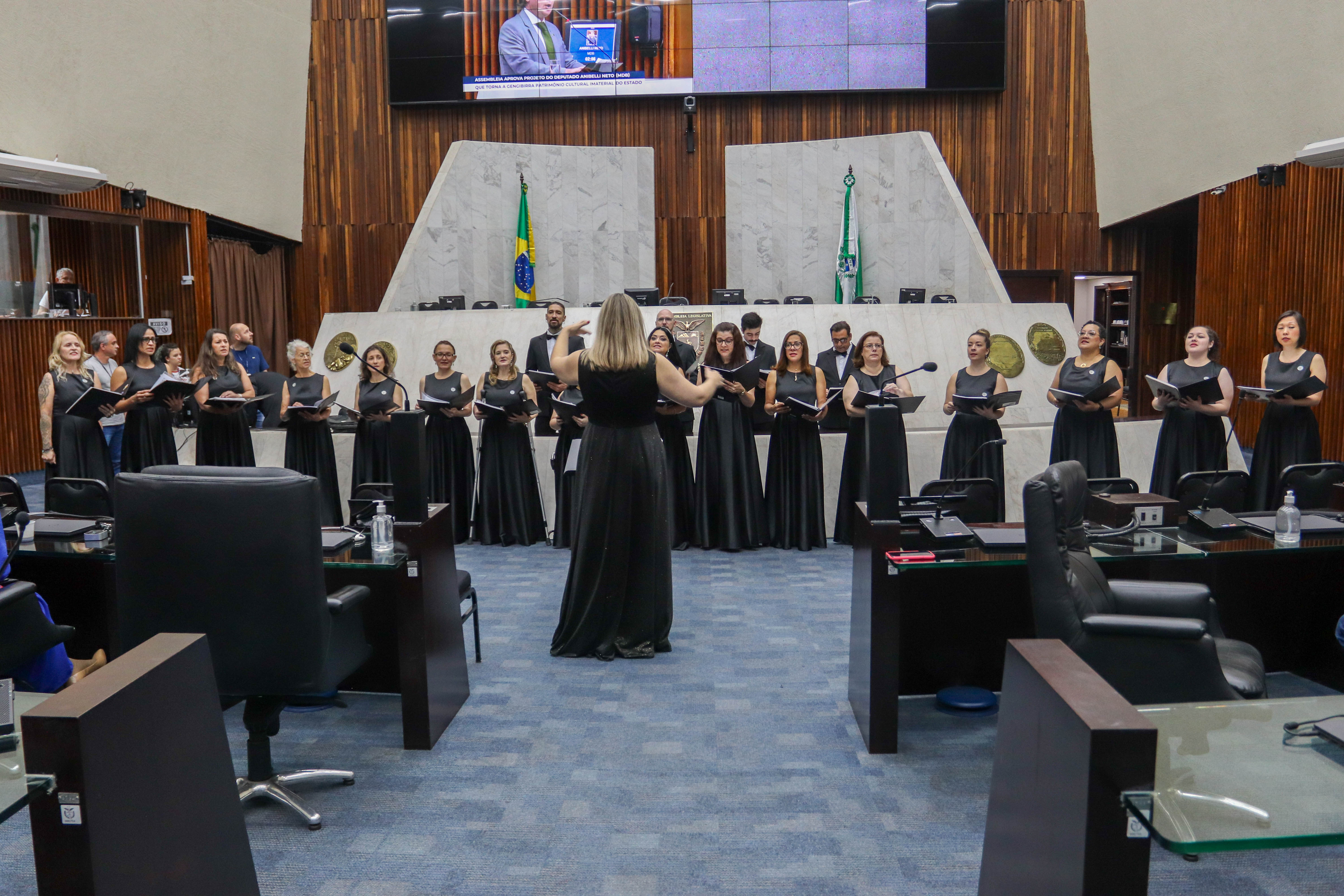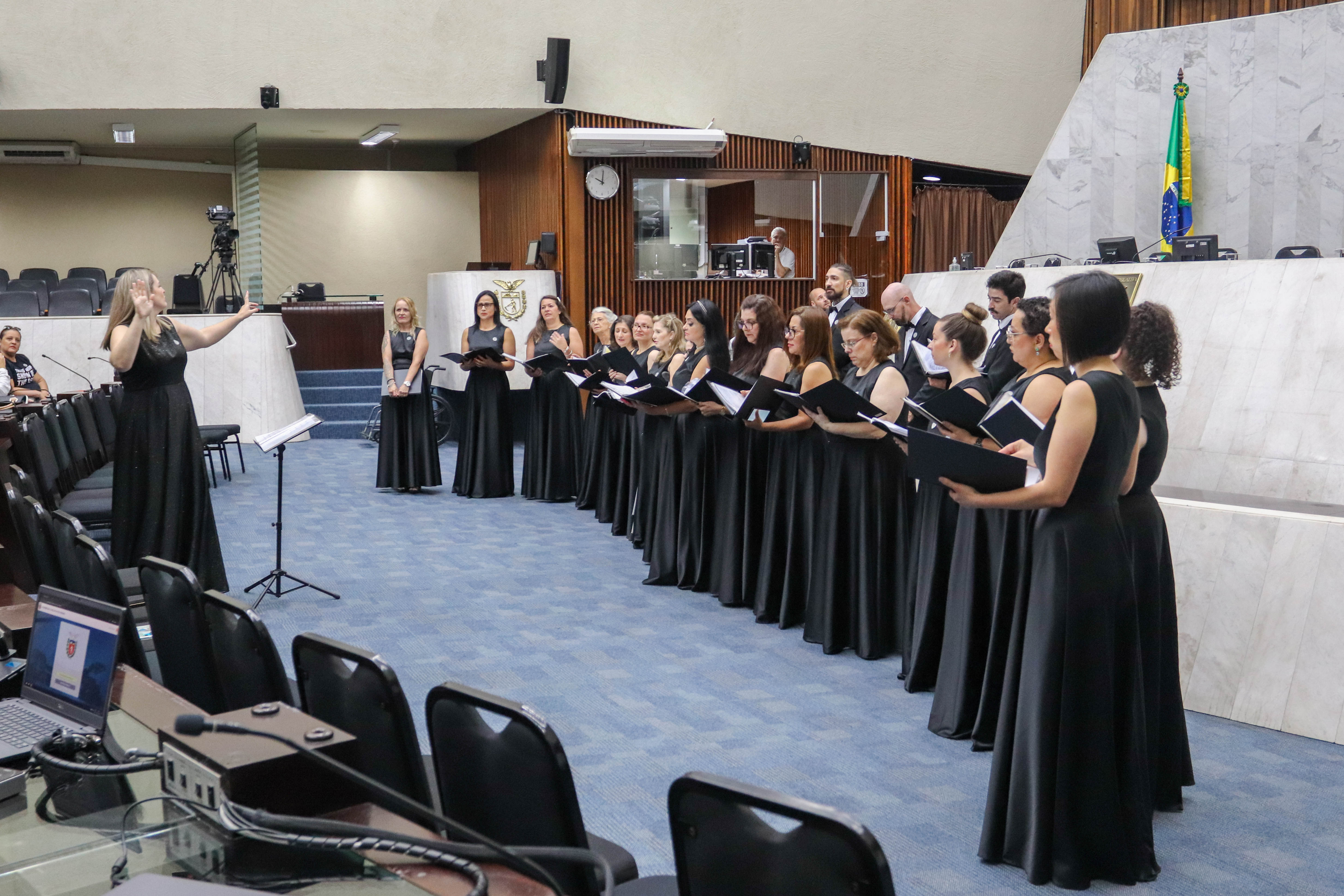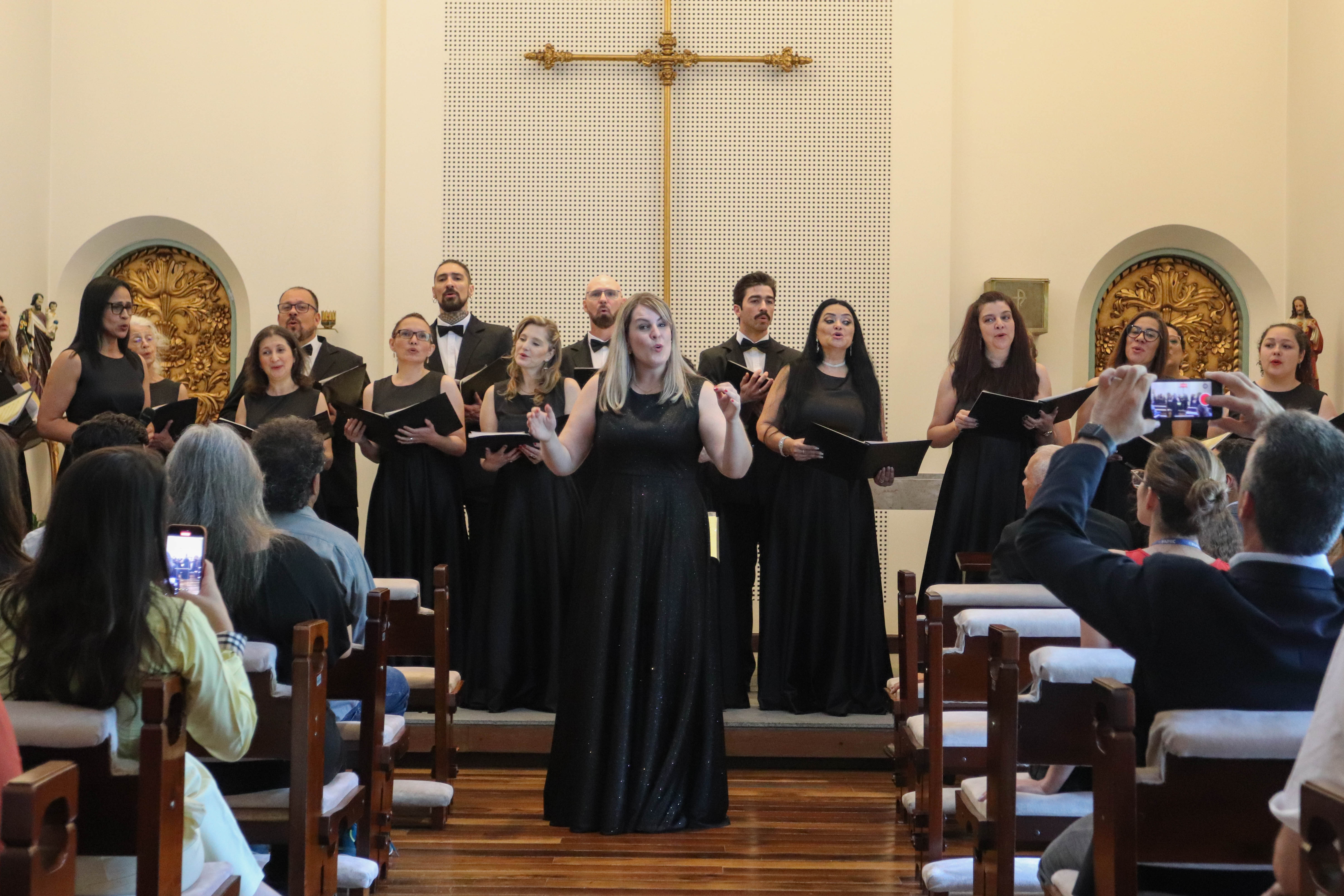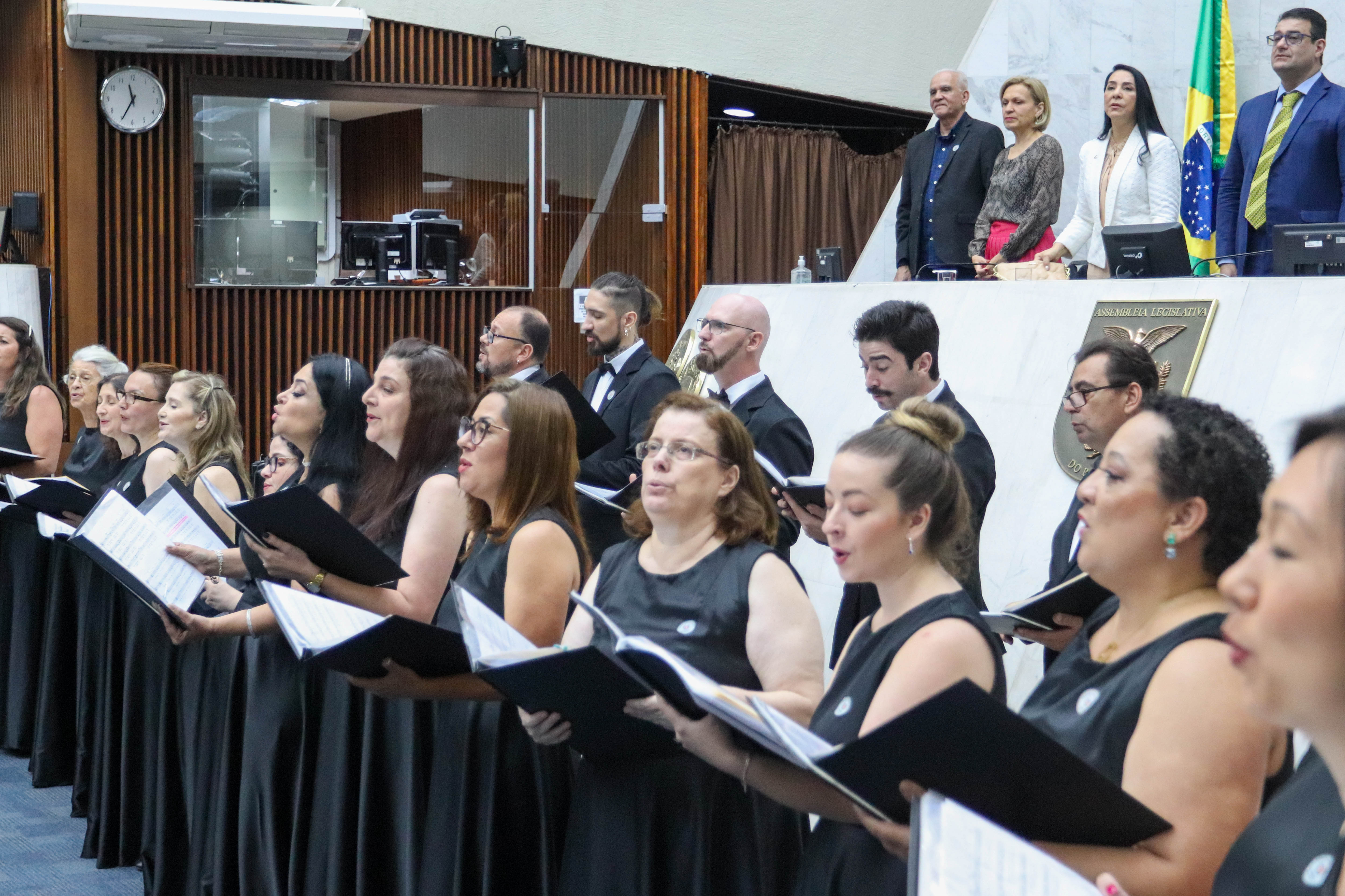 O plenário da Assembleia Legislativa do Paraná (Alep) e a capela do Palácio Iguaçu, em Curitiba (PR), foram cenários das últimas apresentações de Natal do Coro Margareth Picler em 2024. A convite do deputado Alexandre Amaro e do bispo Cirino Ferro, o grupo se apresentou no Culto de Ação de Graças em celebração ao encerramento do ano legislativo, com participação do coordenador da área de Humanidades da Uninter, Cícero Bezerra.