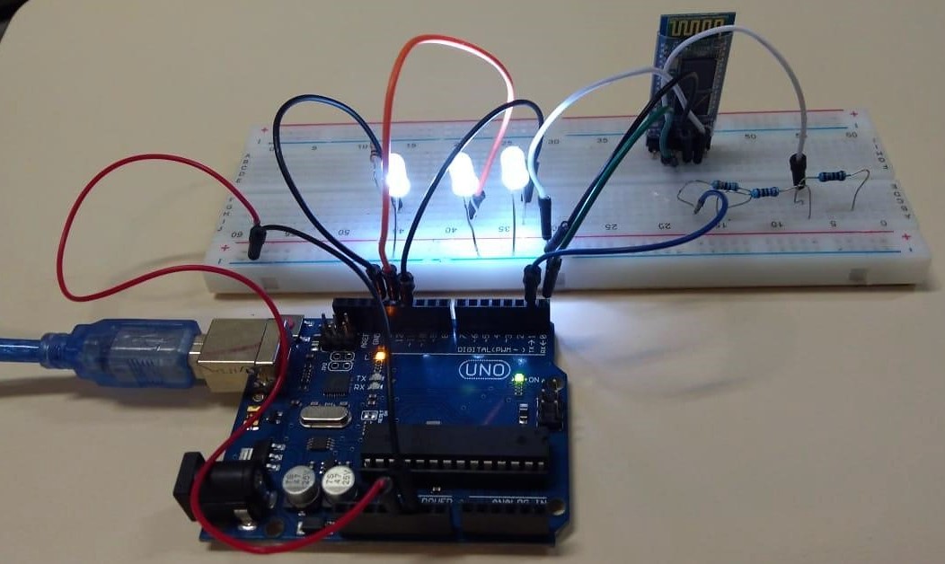 A equipe desenvolveu um aplicativo para Android, que, através da ferramenta MIT APP Inventor, utiliza uma biblioteca de controle de voz, e ao reconhecer os comandos definidos envia um dado por meio da interface Bluetooth para o Kit Arduíno, que é uma placa eletrônica com processador embarcado que utiliza um microcontrolador chamado ATmega do fabricante Atmel. Assim, faz o controle de acender ou pagar LEDs, que simulam a iluminação de uma residência, por exemplo. Microcontrolador é um circuito eletrônico que utiliza um processador para fazer a leitura de dados de sensores e exibir informações em um display.