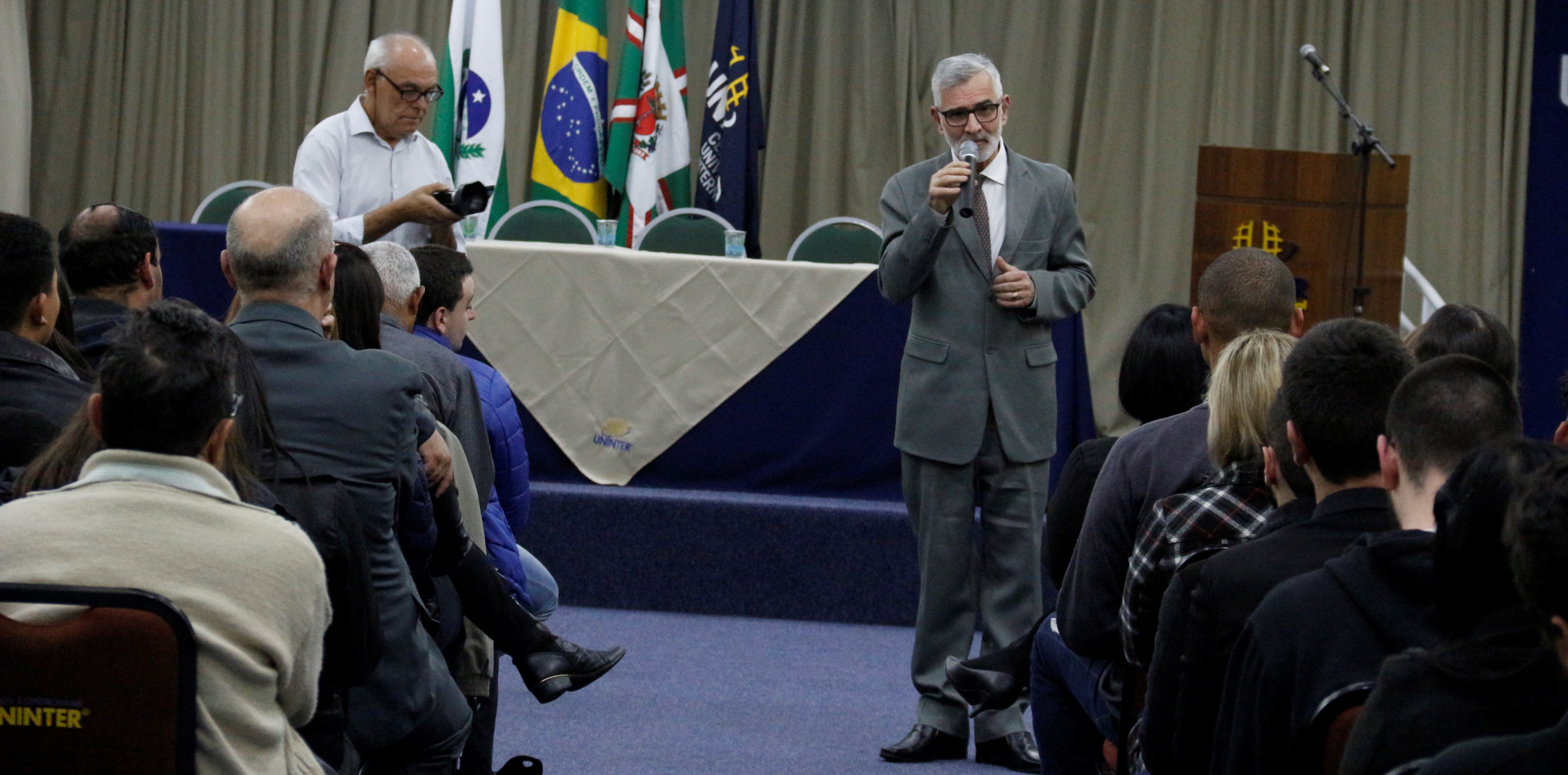O curso de Direito da Uninter inaugurou o semestre letivo com um assunto que costuma encantar os estudantes, o tribunal do júri. Autoridade na área, o advogado criminalista Eduardo Coutinho Junior tratou do assunto. Em 30 anos de experiência, atuou em 400 júris. A palestra “Teoria e prática do tribunal do júri em casos concretos” abordou aspectos técnicos e práticos presentes na rotina de um tribunal, com destaque à arte da oratória e retórica.