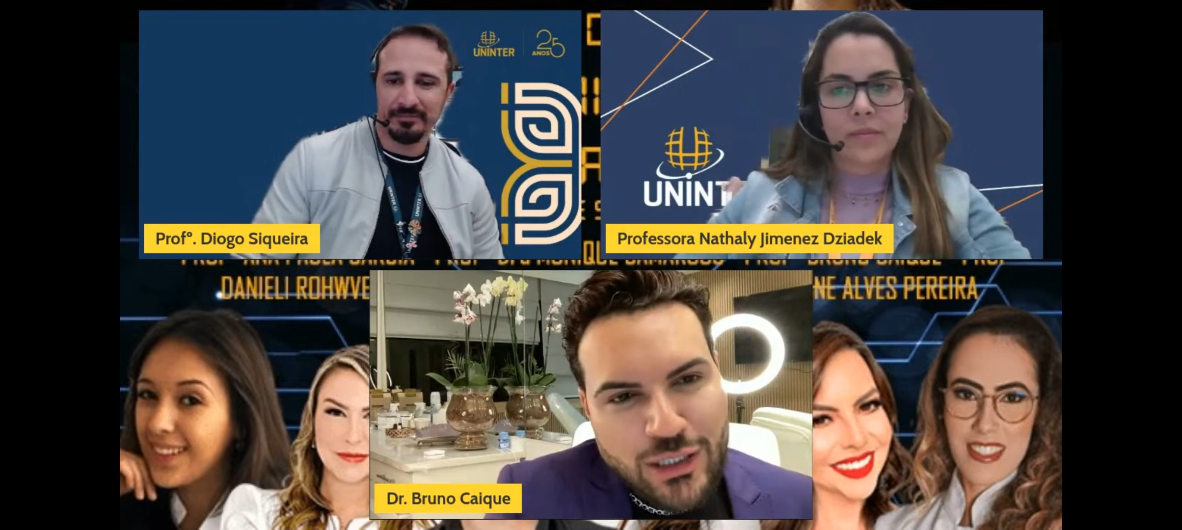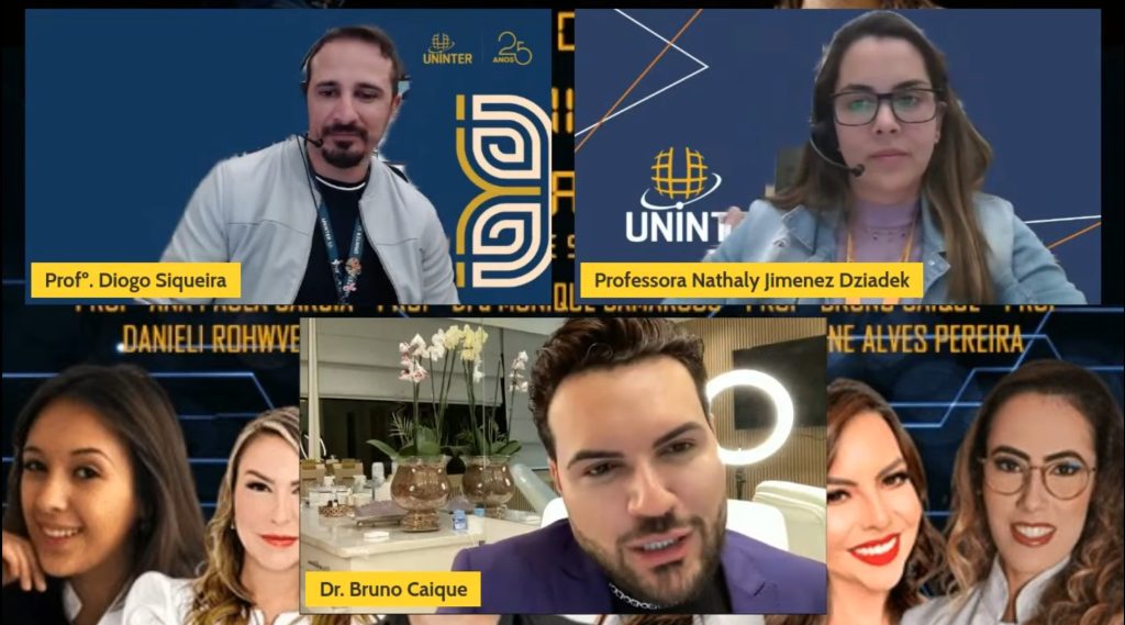 Palestrantes: Diogo Siqueira (coordenador dos Cursos de Tecnologia em Estética e Cosmética e Tecnologia em Podologia da Uninter) e Nathaly Dziadek (Especialista em Biomedicina estética)