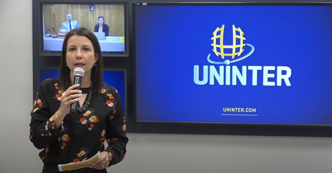 Já a palestra foi ministrada pela secretária executiva Kelle da Cruz Araujo e trouxe um novo formato para os eventos da Uninter. Enquanto a equipe docente do curso estava nos estúdios da instituição em Curitiba, a palestrante estava no polo de Brasília junto com alguns alunos da cidade, proporcionando uma experiência hibrida mais aprofundada e com interação tanto virtual quanto presencial.