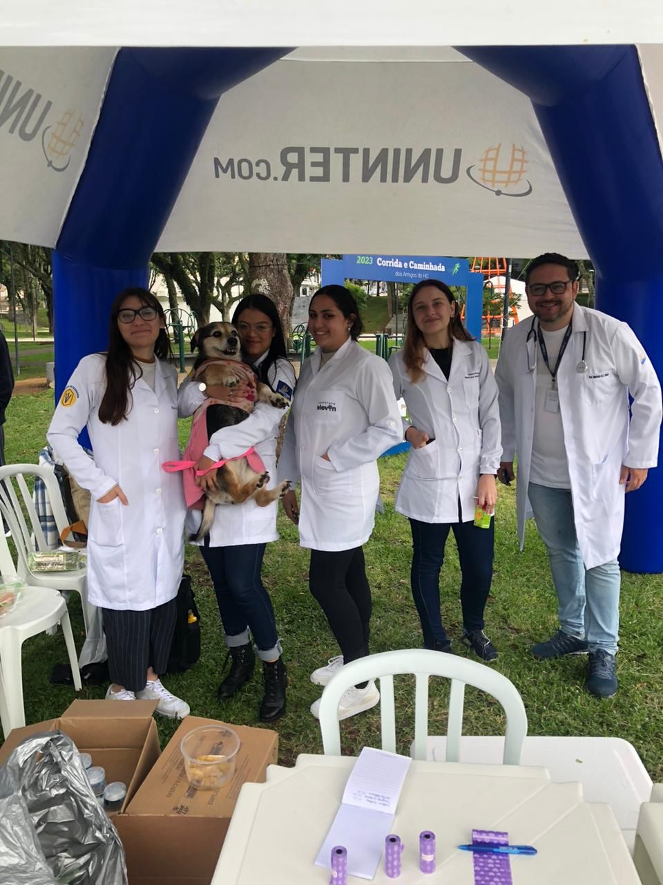 No Espaço Pets, o curso de Medicina Veterinária fez a alegria dos animais presentes no local. Alunas do curso se prepararam desde às 6h da manhã do mesmo dia para participar da organização e execução dos serviços ofertados aos cães e tutores da Cãominhada. As estudantes produziram 300 geladinhos de ração, banana e água para a distribuição. Também sortearam brindes como hidratante para patas e focinhos, bebedouro portátil e pacote de petiscos.