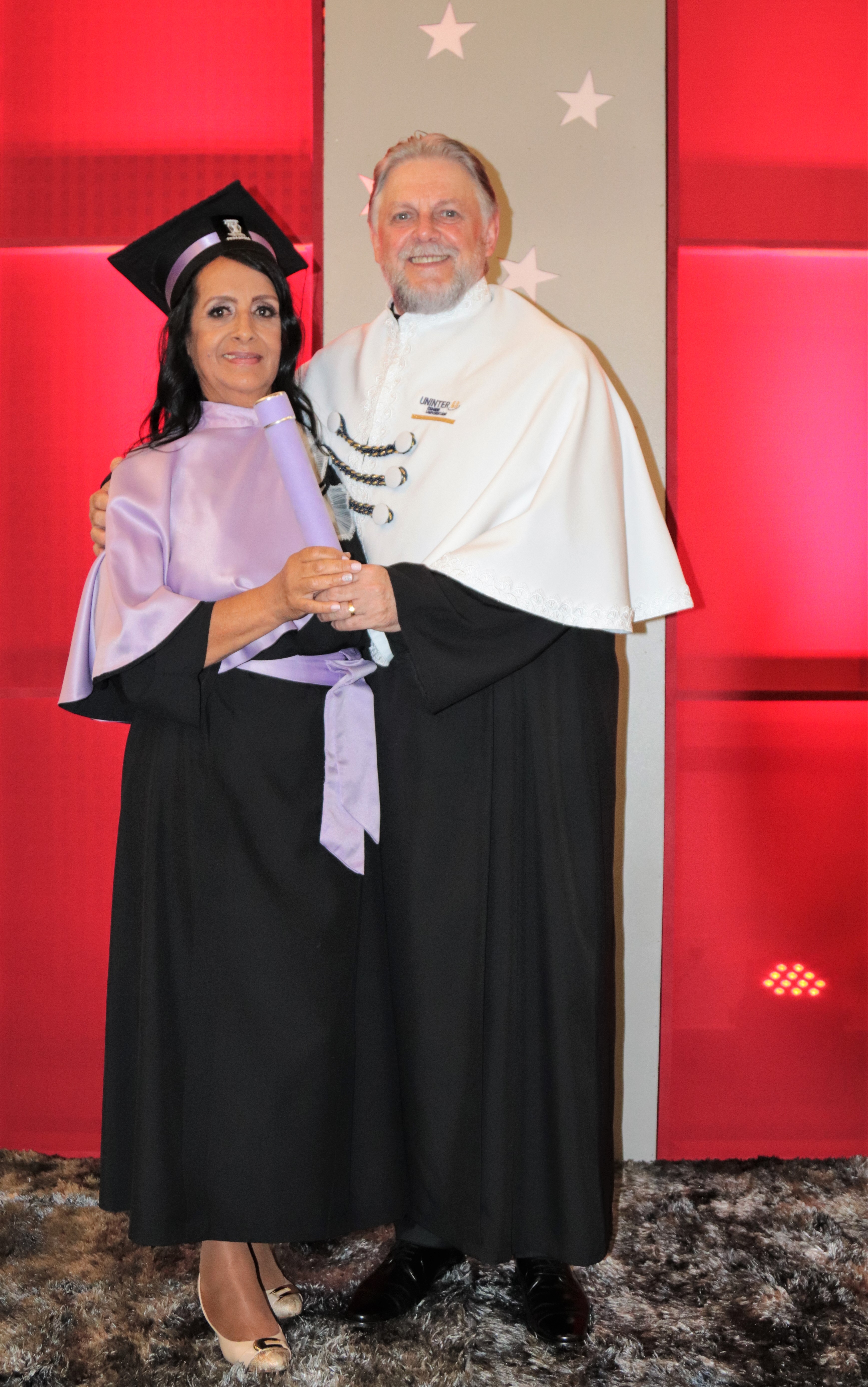 Cida era uma das 16 alunas e alunos de Pedagogia a receber o canudo das mãos do reitor da Uninter, Benhur Gaio, e da coordenadora do curso, Gisele do Rocio Cordeiro. Essa relação de Cida com a Uninter começou 8 anos antes, quando ela teve de tomar uma decisão.
