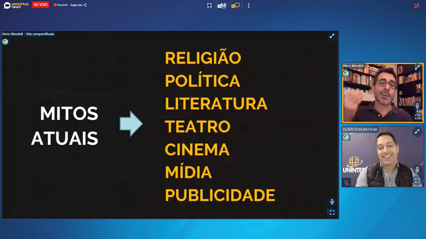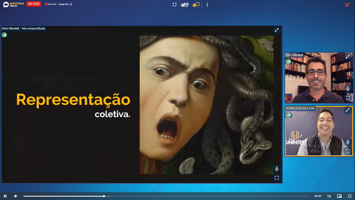 A fala de Hertz aconteceu durante a live Storytelling – Bases Criativas Universais, que contou com mediação do coordenador dos cursos de pós-graduação na área da Comunicação da Uninter, professor Clóvis Teixeira Filho. A conversa foi transmitida no dia 11.maio.2021, e pode ser assistida na íntegra através do AVA Univirtus.
