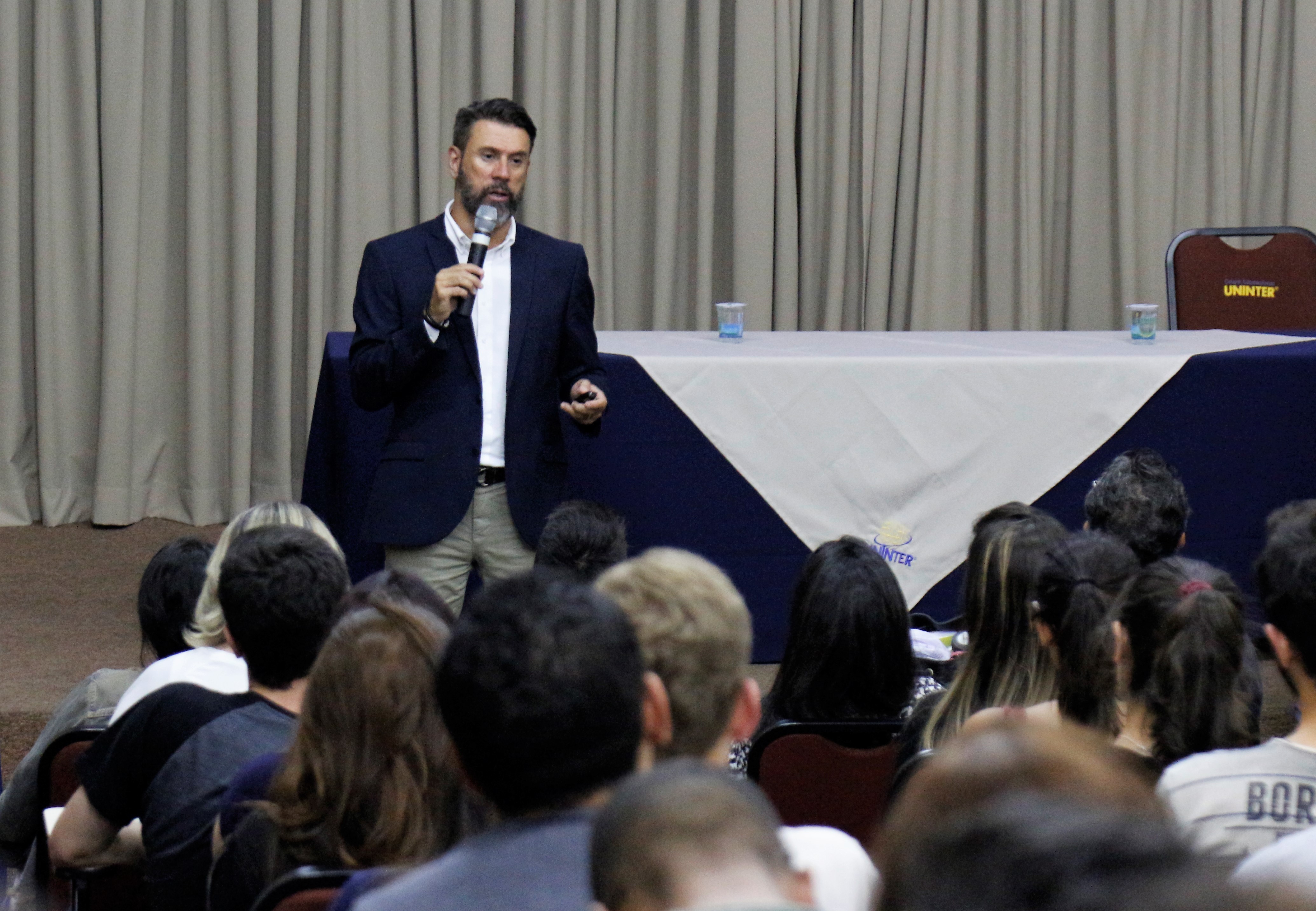A aula magna do curso de Administração da Uninter deste ano, realizada no dia 27 de fevereiro. veio com uma proposta diferente das anteriores, ao propor uma reflexão dos estudantes sobre o próprio futuro profissional. Nos períodos da manhã e da noite, o professor do novo curso de Marketing Digital da Uninter, Ney Queiroz Azevedo, reuniu-se com os alunos e professores para fazê-los pensar.