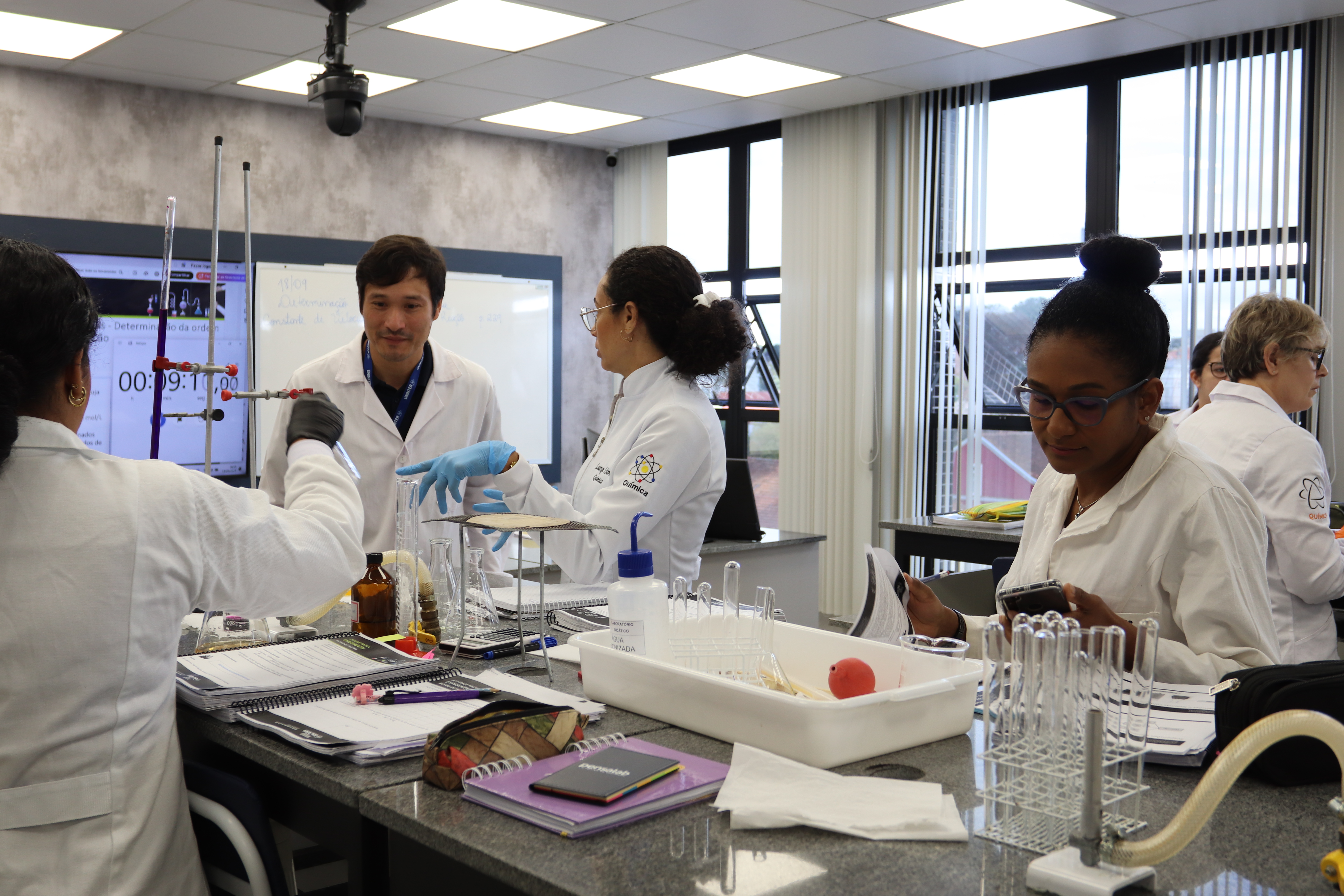 Alunos do curso de Bacharelado em Química participaram da oficina de práticas presenciais entre os dias 15 e 19 de setembro. Realizada no Laboratório de Aprendizagem e Pesquisa Aplicada (LAPAD) do campus Divina Providência, em Curitiba (PR), a aula contou com estudantes de seis estados do país, sendo eles Bahia, Minas Gerais, Pará, Paraná, São Paulo e Rio Grande do Sul.