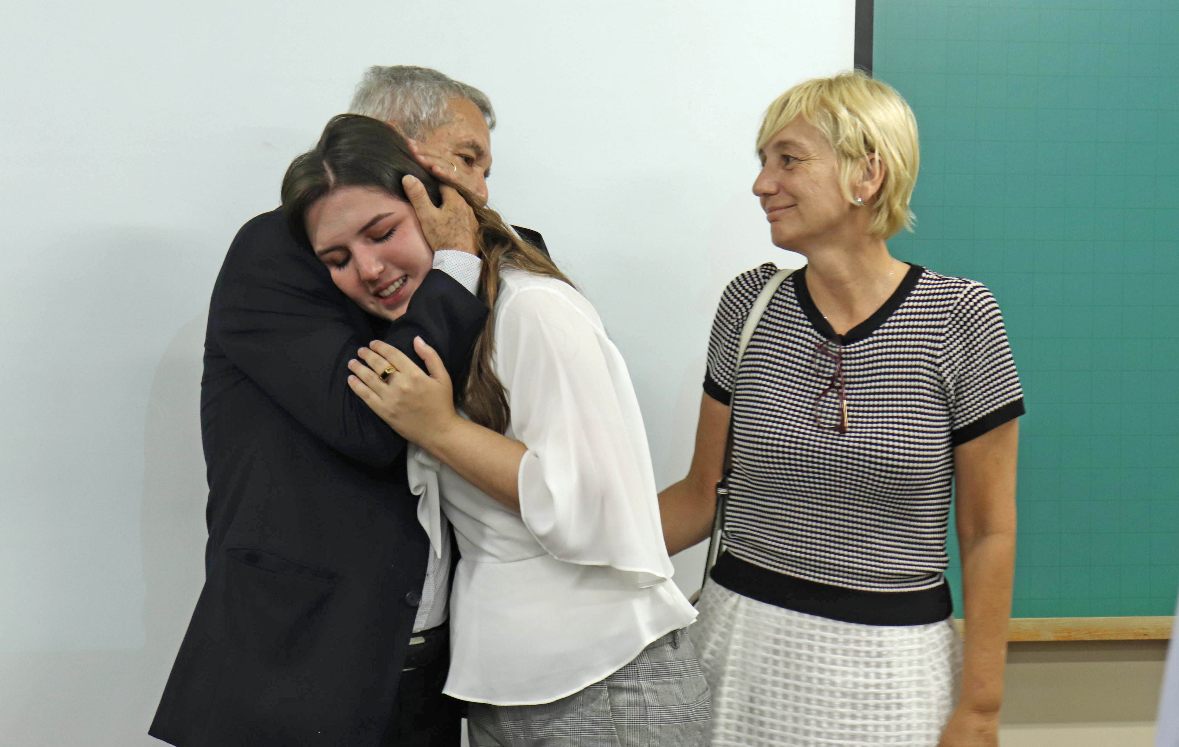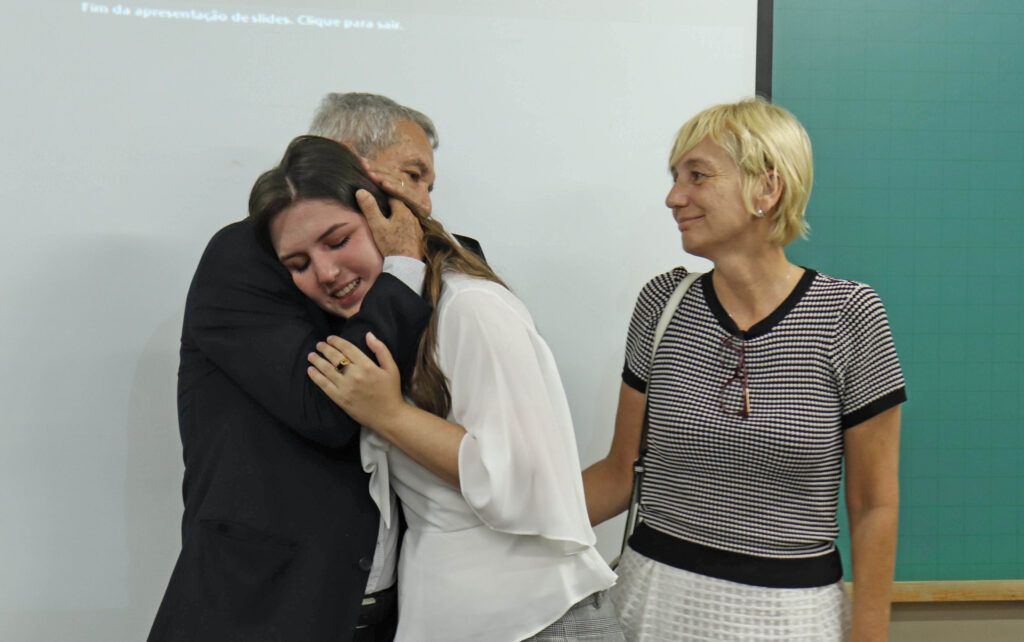 Em sua dissertação no Mestrado em Educação e Novas Tecnologias da Uninter, Luisa Dalla Costa (na foto, com os pais) defende a ideia de que esses conhecimentos não são o bastante. “A gente parte do princípio de que as pessoas são formadas, na faculdade, para atuar no mercado de trabalho de maneira muito técnica e que, de uma forma geral, elas chegam muito bem preparadas para isso. Mas o que normalmente é um desafio nas organizações são as questões comportamentais. Oitenta por cento das demissões acontecem por questões comportamentais”, justifica.